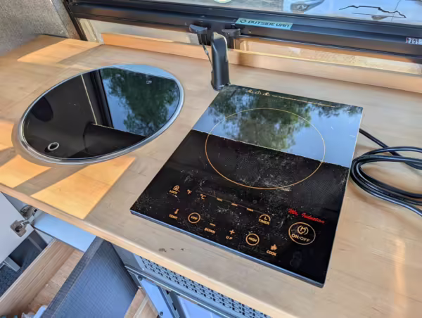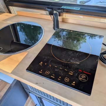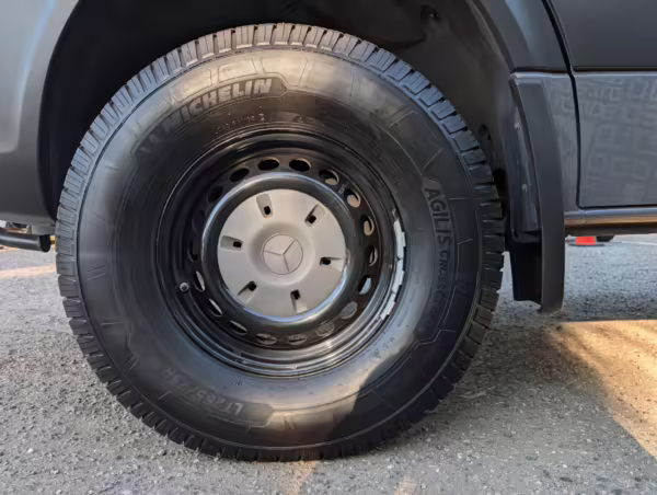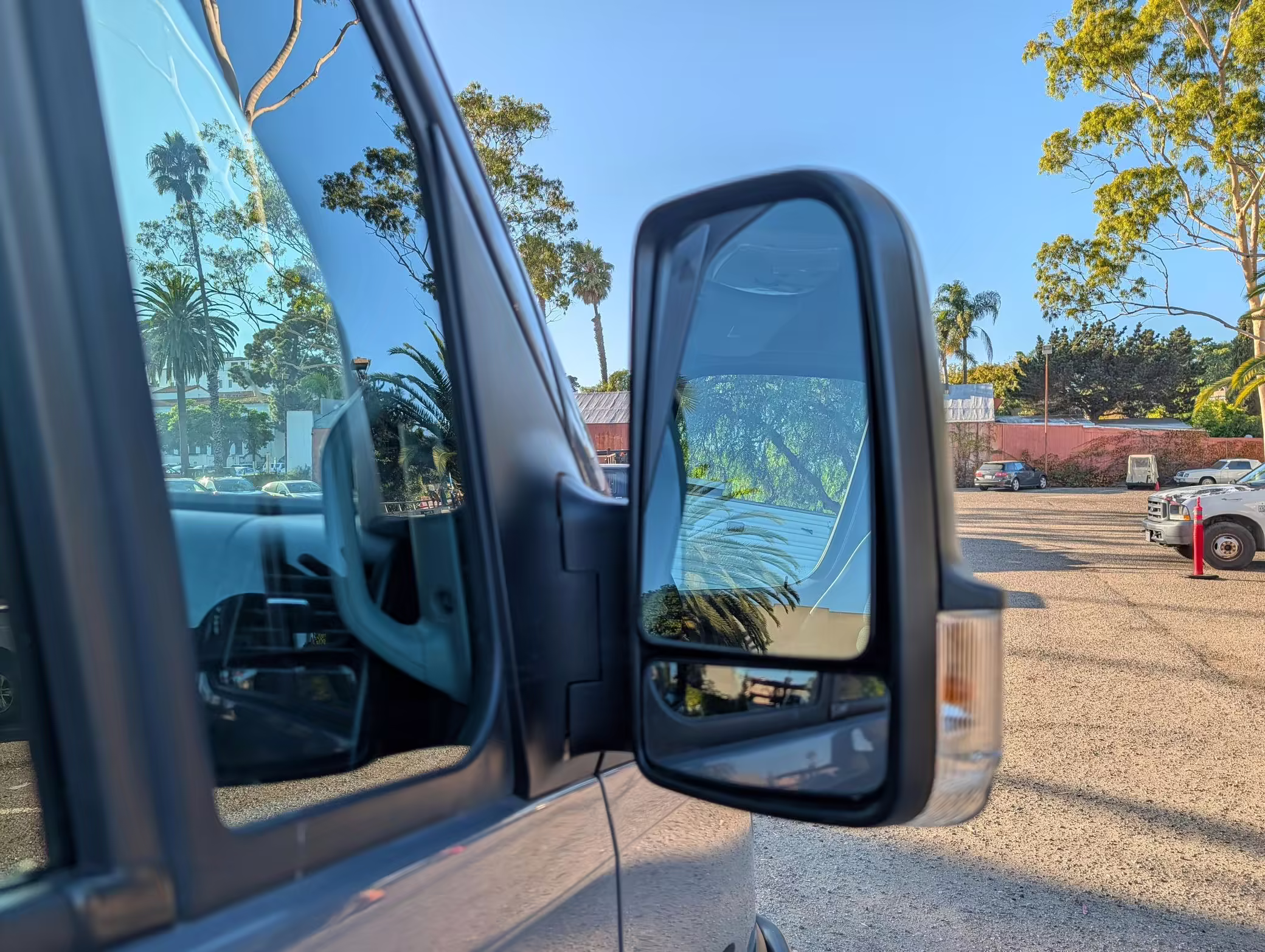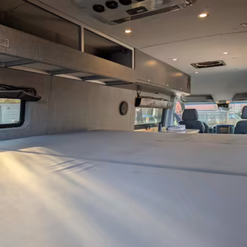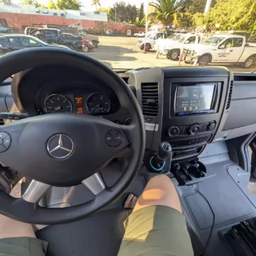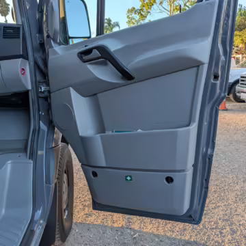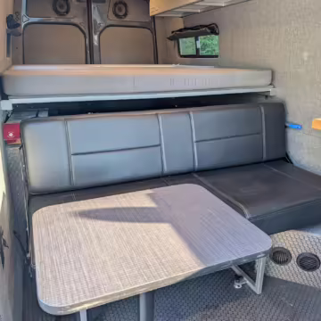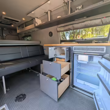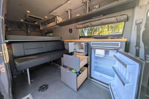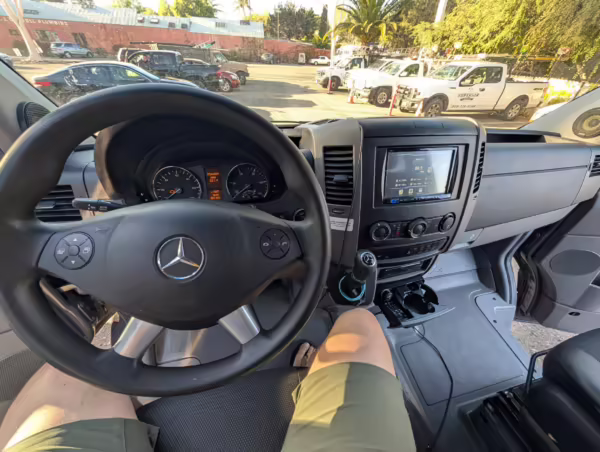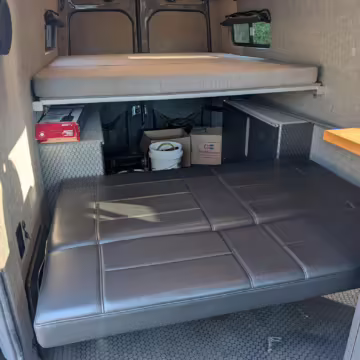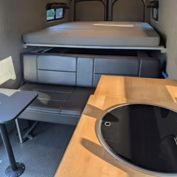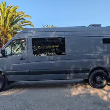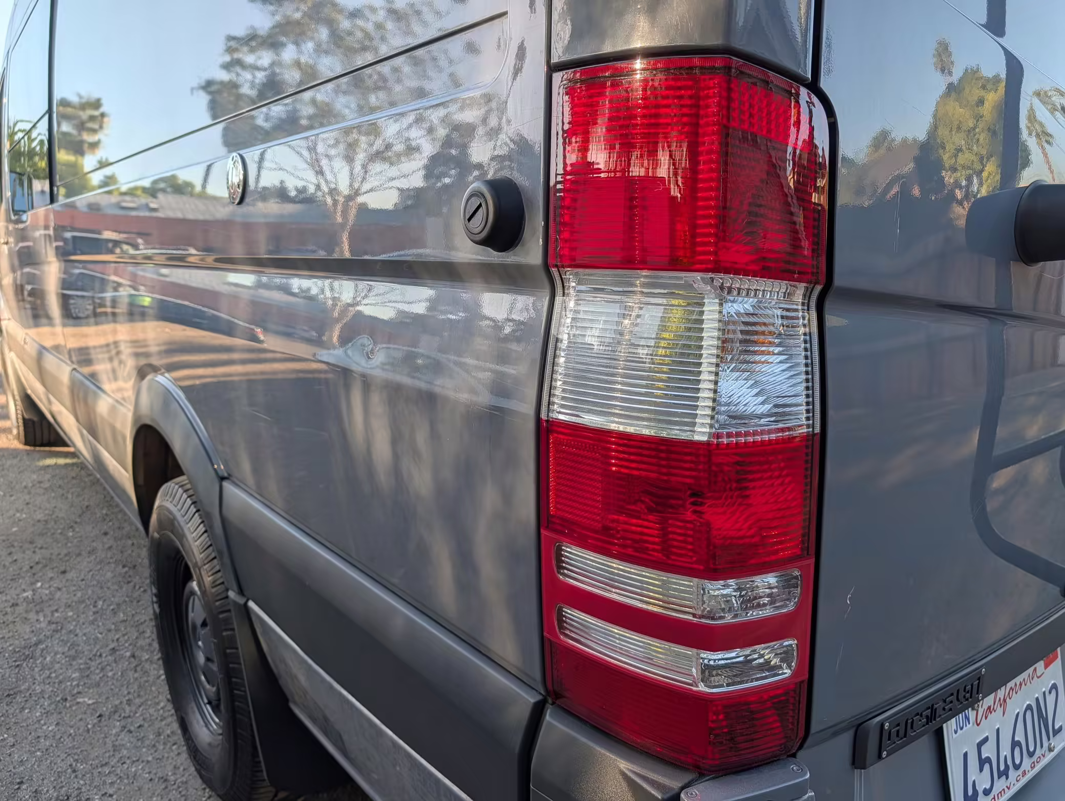 This particular Sprinter 2500 touts a turbodiesel V6 engine paired with 4-wheel drive, and it’s been converted into a camper by Outside Vans. The conversion included the installation of Outside Van bumpers, LED exterior lights, a Fiamma awning, a 3-panel removable bed, a sink, a refrigerator, roof-mounted solar panels, and a 20-gallon fresh water tank.