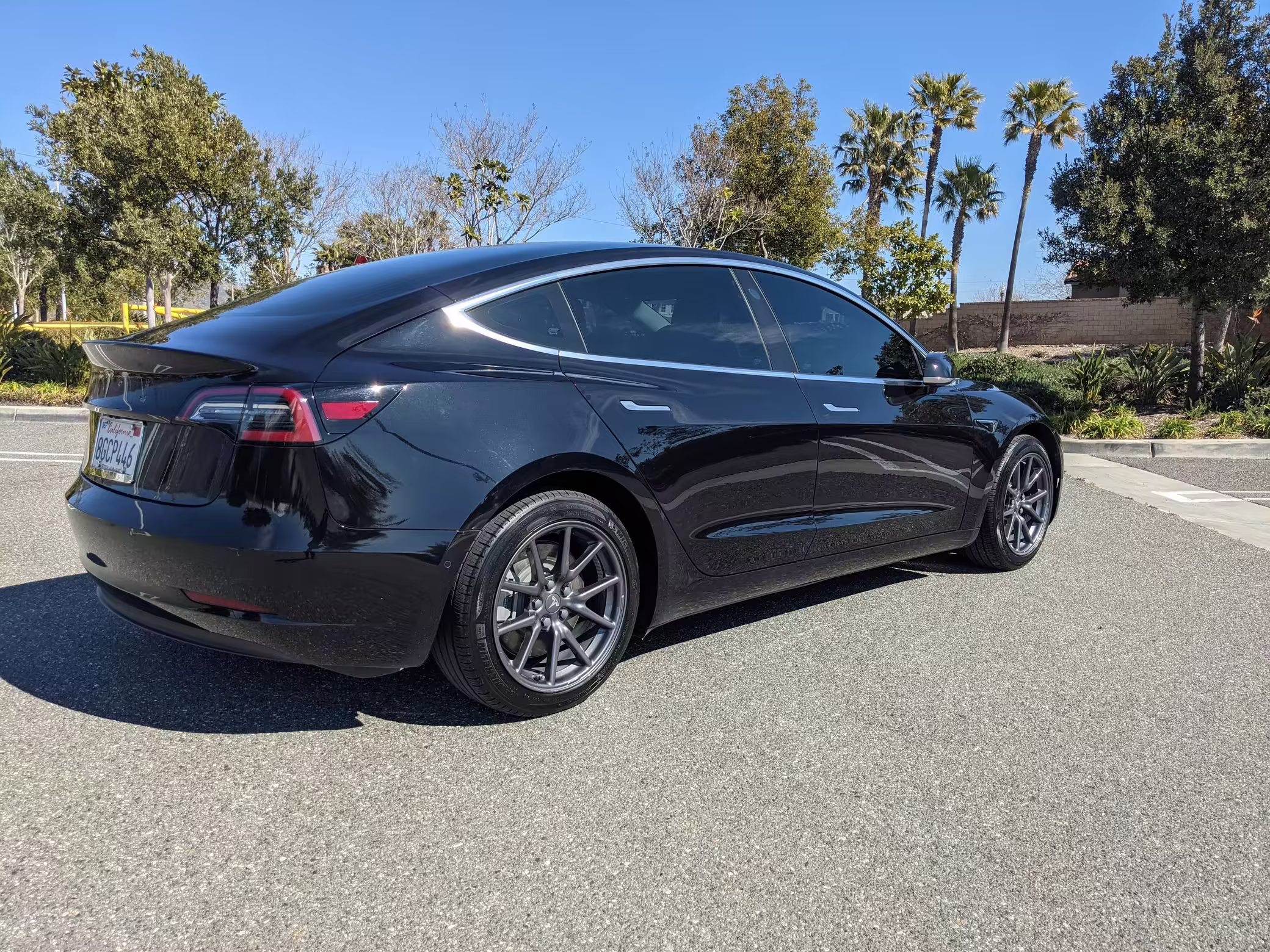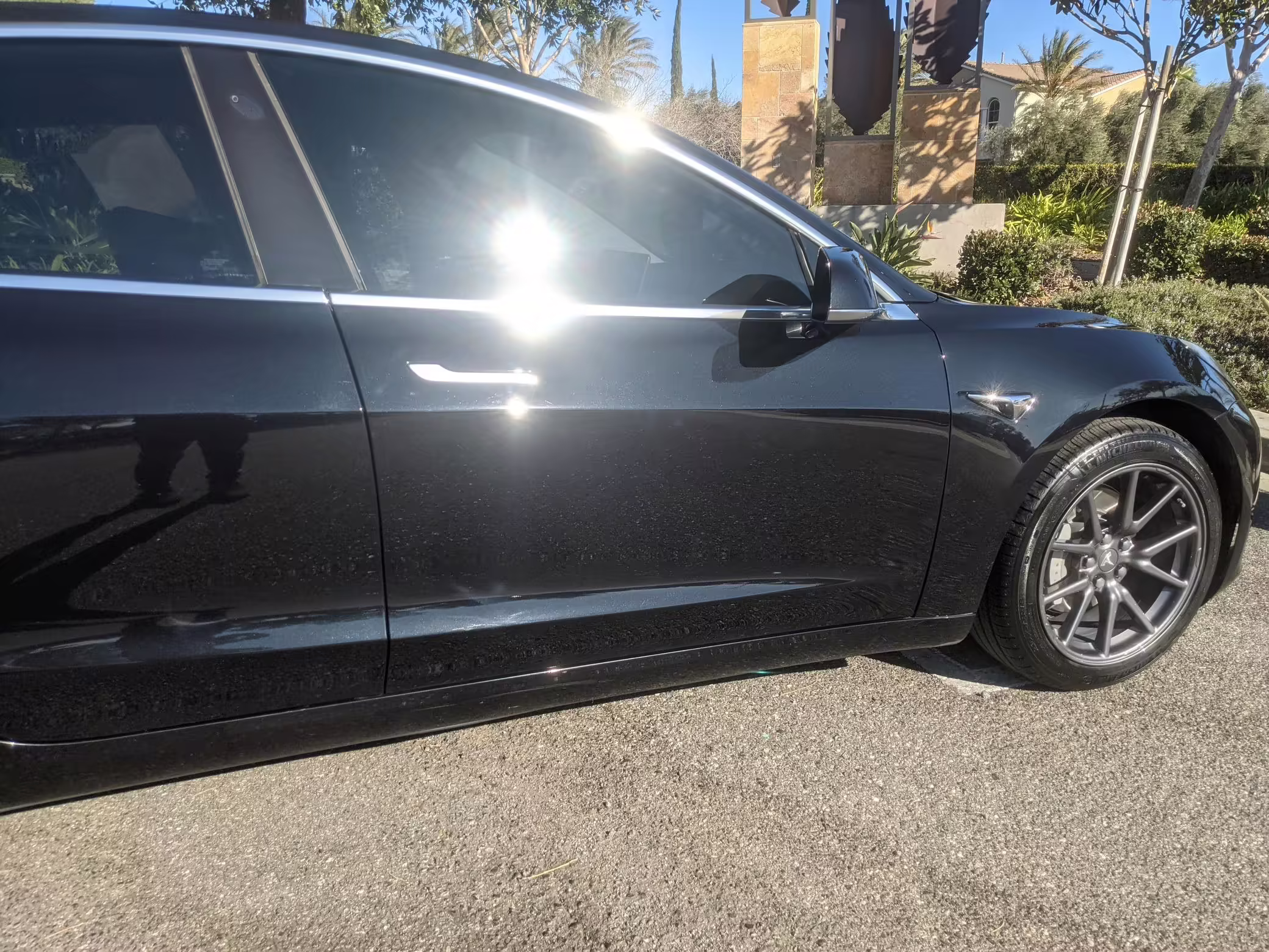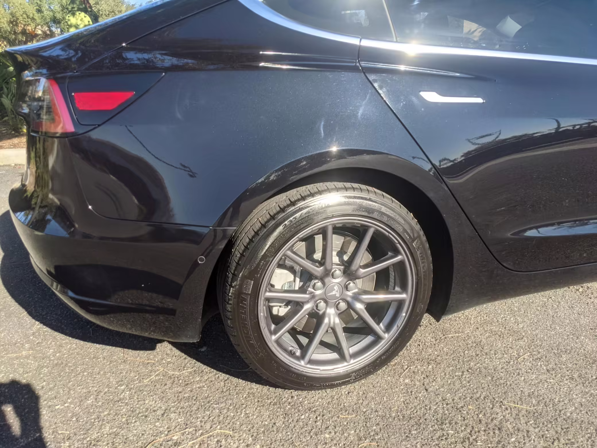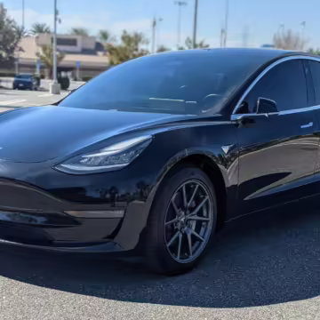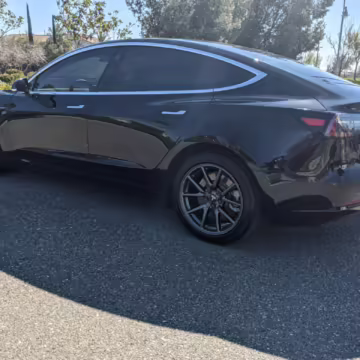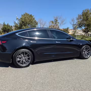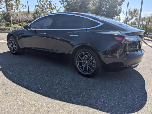 Modifications on this Tesla are limited to the removal of the aero wheel caps and window tint.