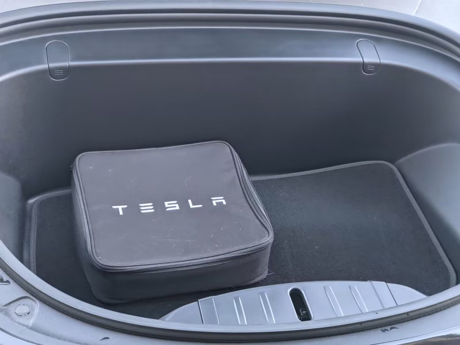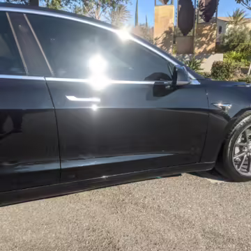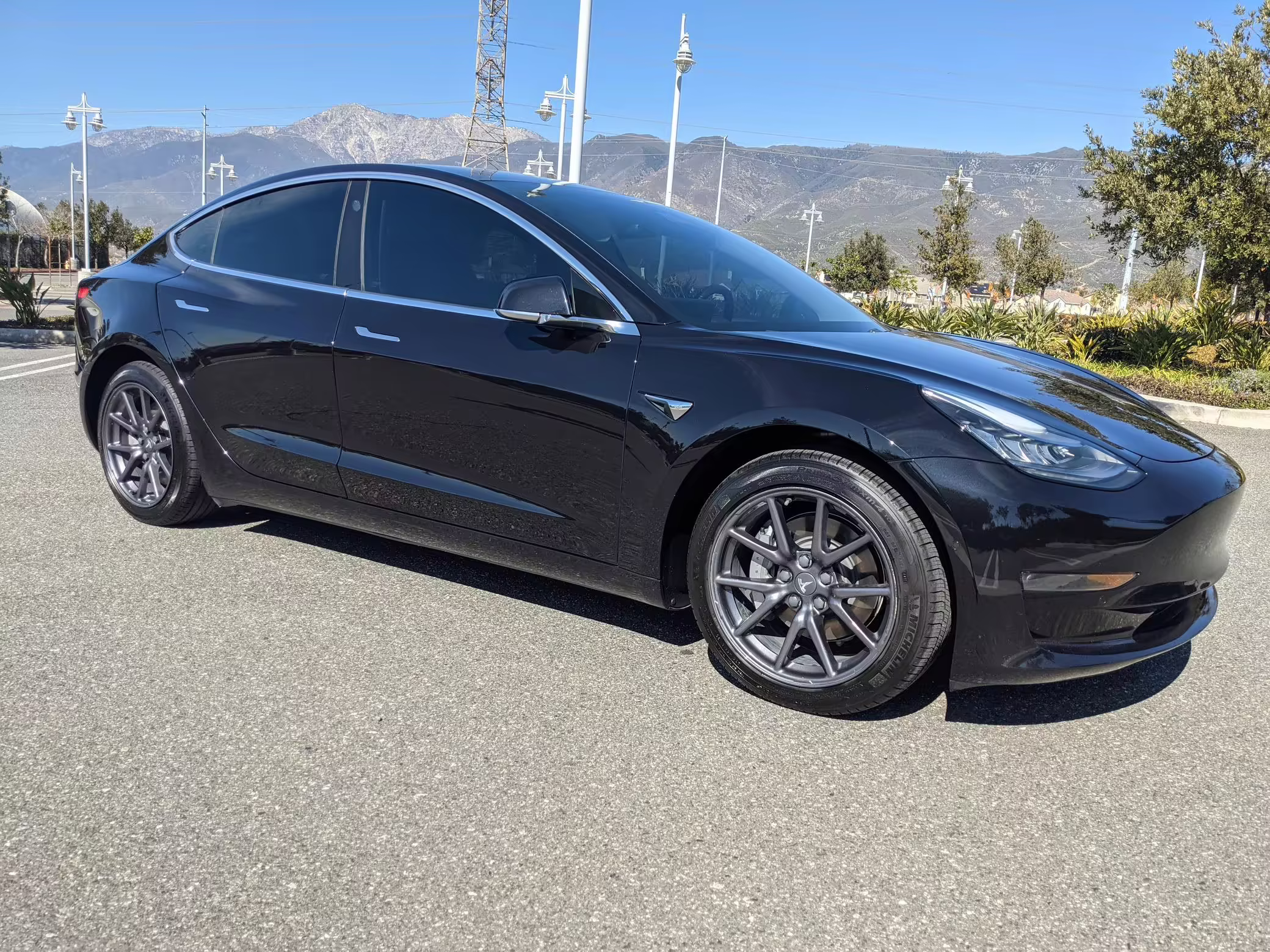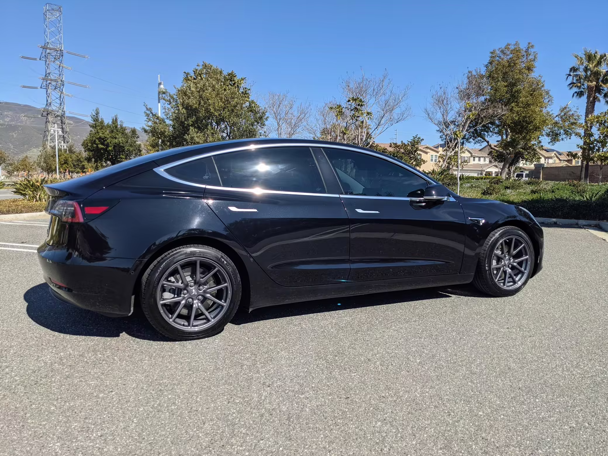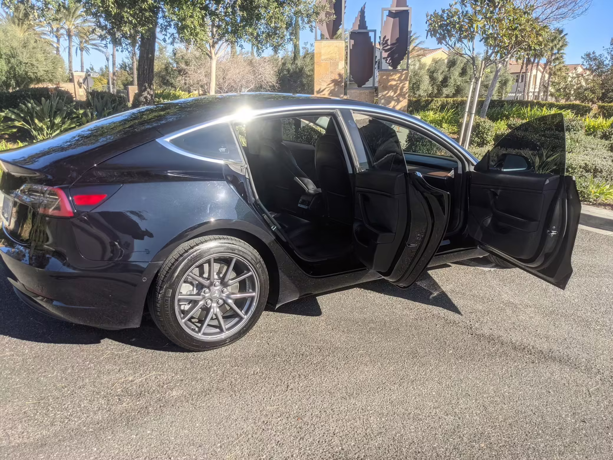 Modifications on this Tesla are limited to the removal of the aero wheel caps and window tint.