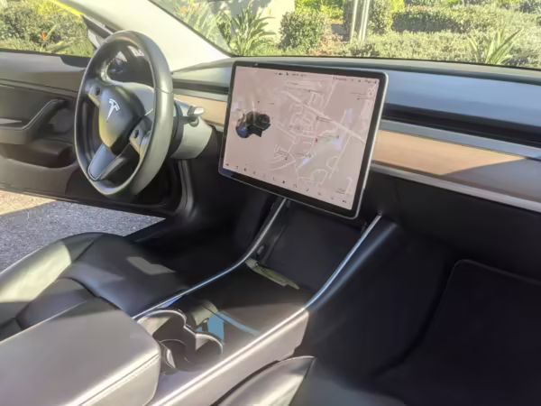 This Model 3 is well-equipped with Enhanced Autopilot with Summon and the Premium Upgrades Package, which adds features such as heated seats, premium upholstery, open-pore wood trim, a panoramic glass roof, and the Premium Audio system.