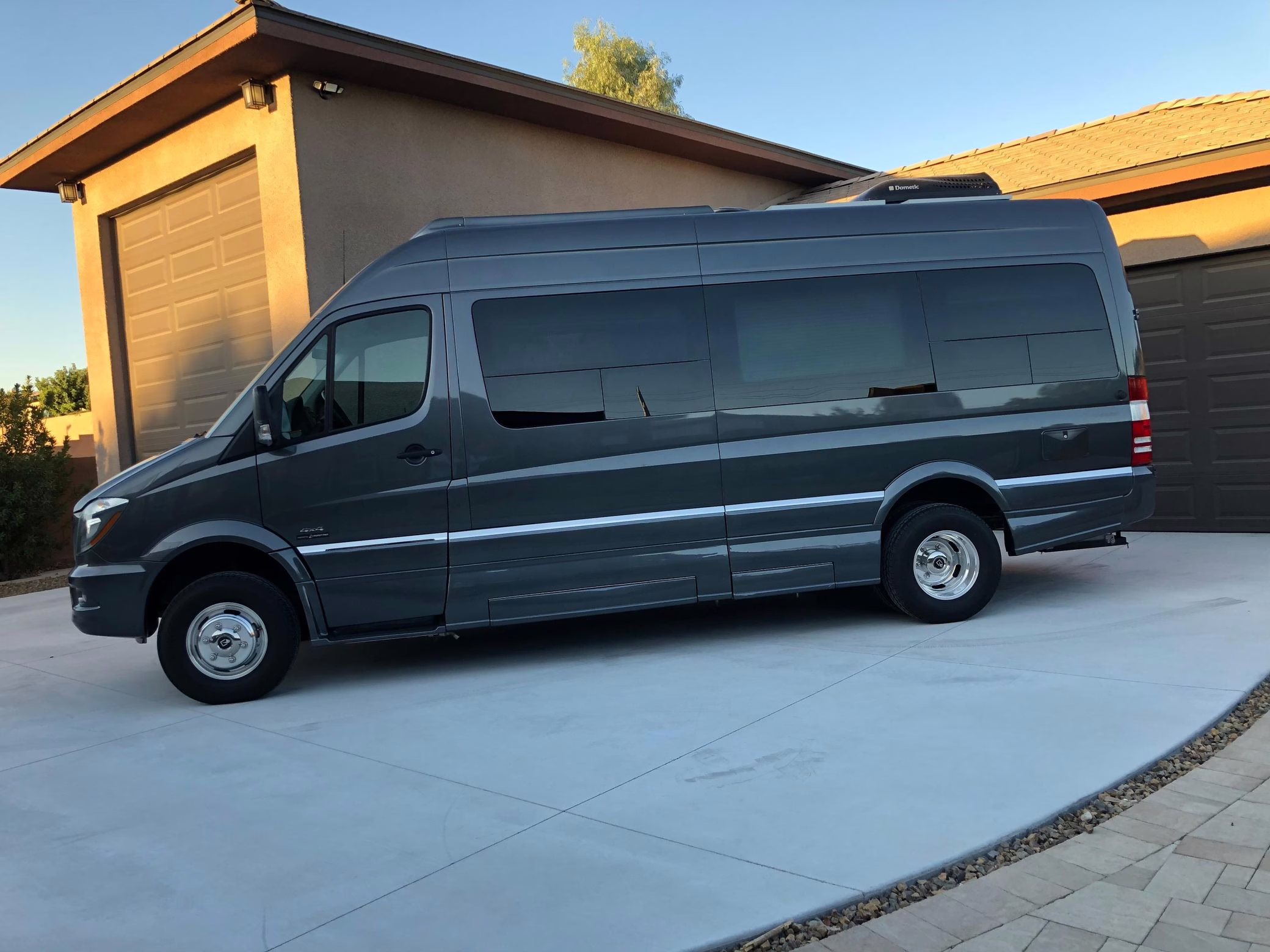 2019 Mercedes-Benz Sprinter 3500XD Roadtrek RS Adventurous, finished in Charcoal Gray with a Platinum Gray interior.