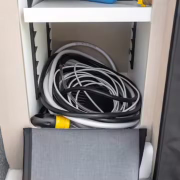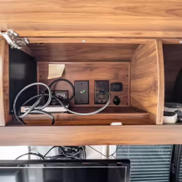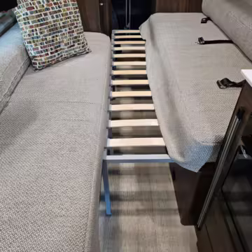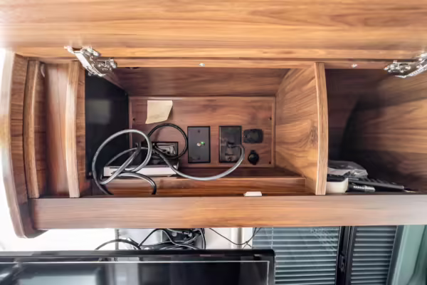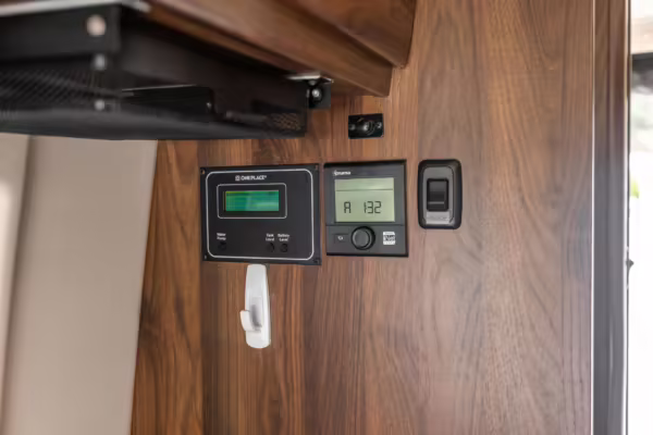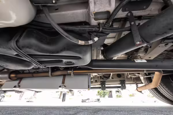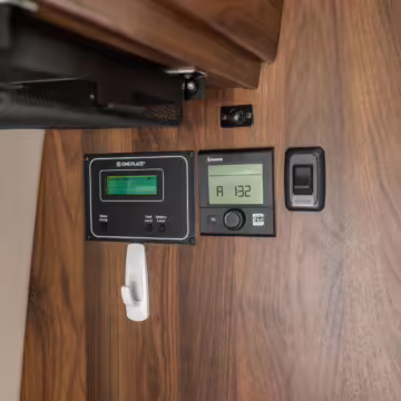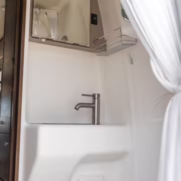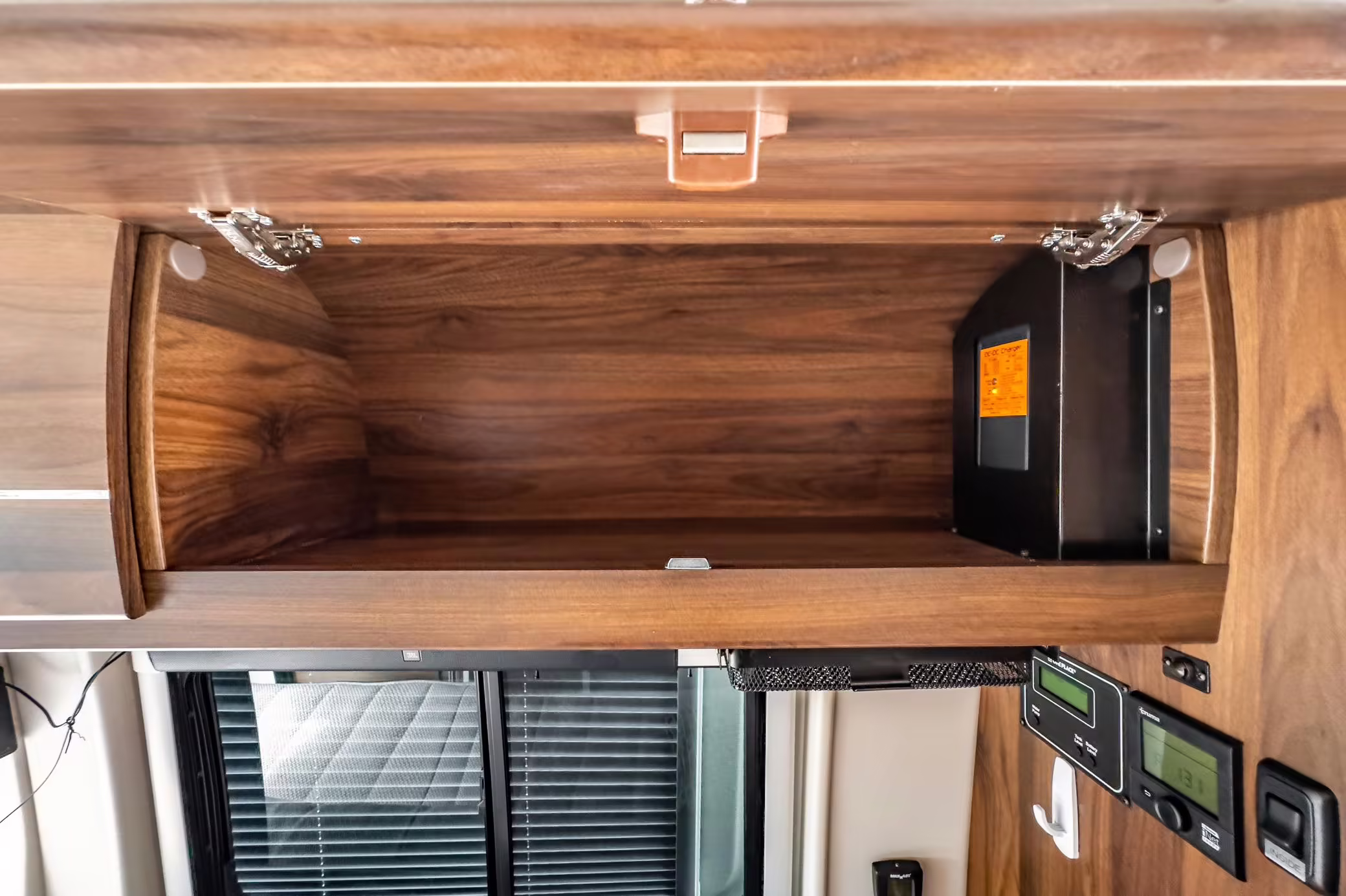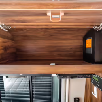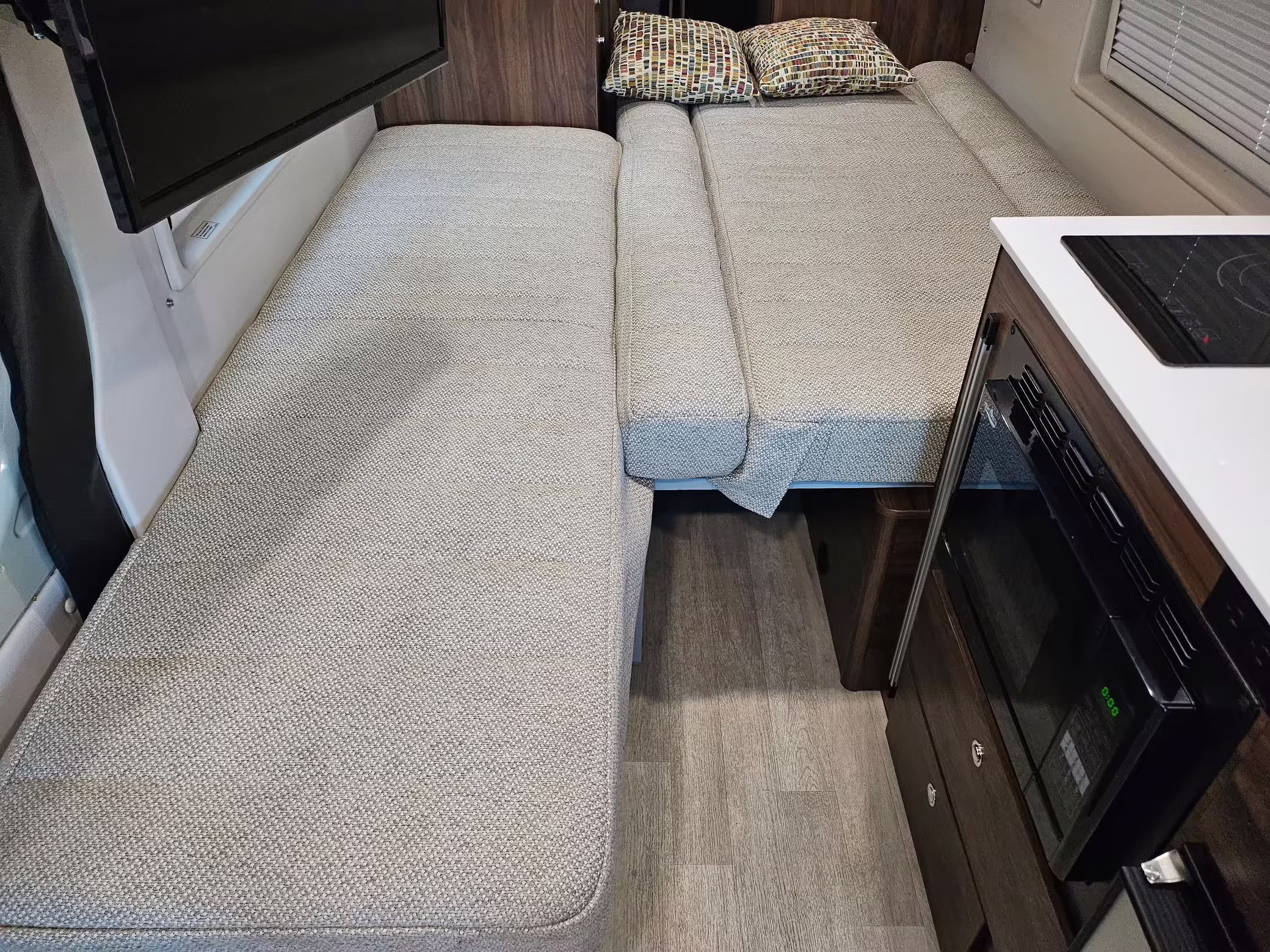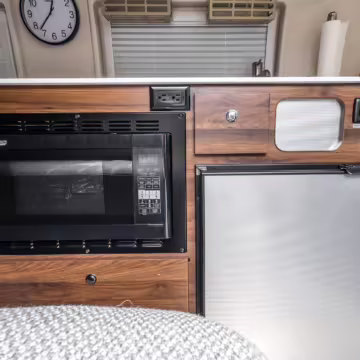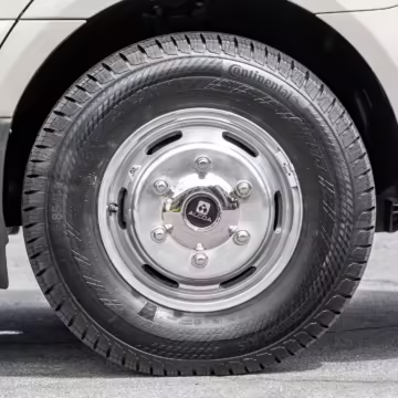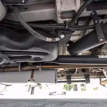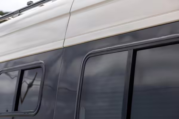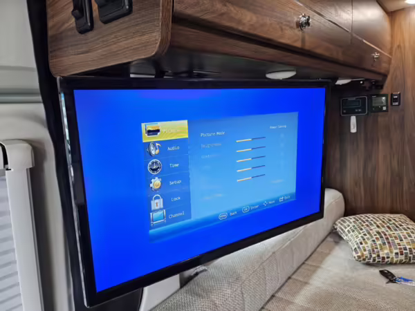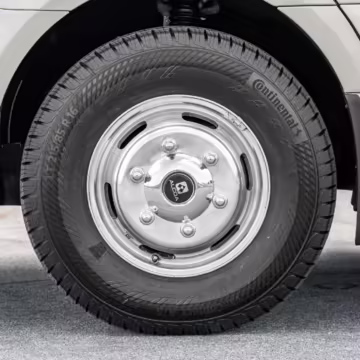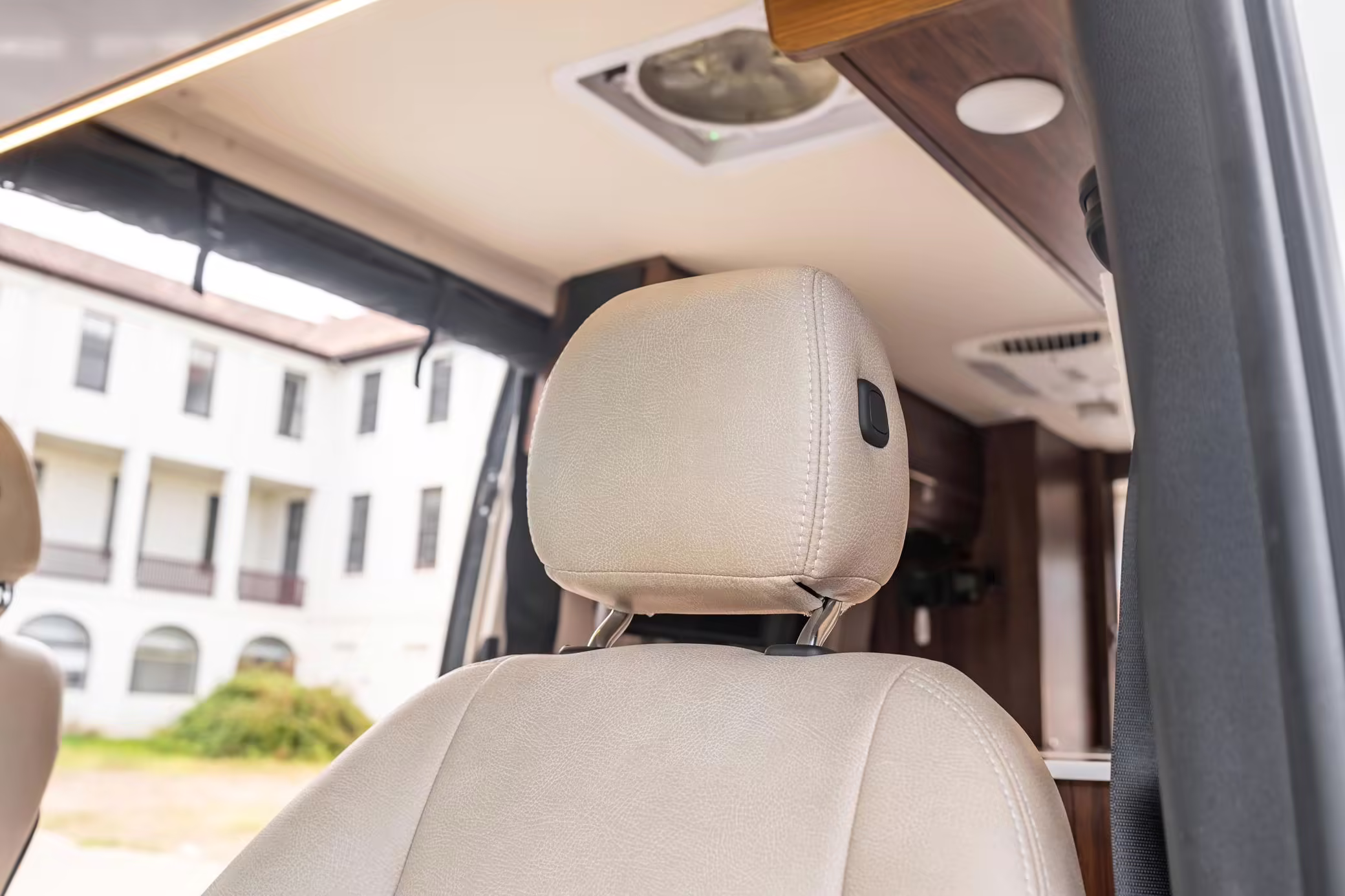 Winnebago Boldt RV conversion (includes side steps, sliding side windows, awning, trailer hitch, rear-mounted ladder, roof rack, 16-inch wheels, Katzkin leather upholstery, twin folding beds, countertop, folding table, Nova Kool fridge, High Pointe microwave, single-burner induction cooktop, stainless-steel sink, shower, toilet, storage cabinets, wardrobe with adjustable and removable shelves, vinyl flooring, window shades, door screens, LED interior lighting, roof-mounted vent, Coleman air conditioning system, Truma Combi Eco Plus heater, electrical outlets, USB charging ports, television, KING OmniGo antenna, roof-mounted solar panels, inverter, AC/DC load center/converter, and systems monitoring panel)