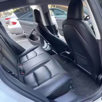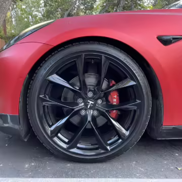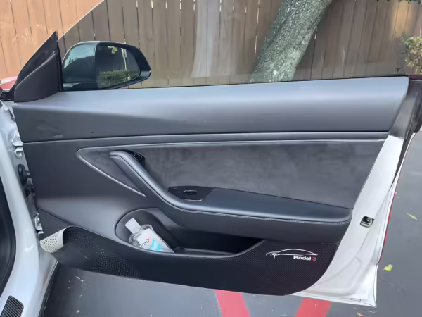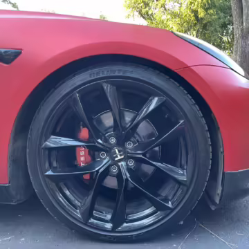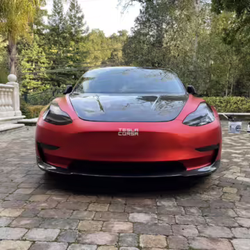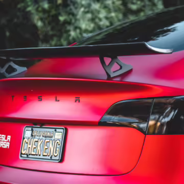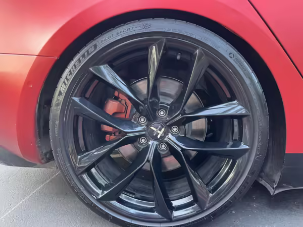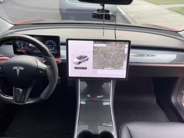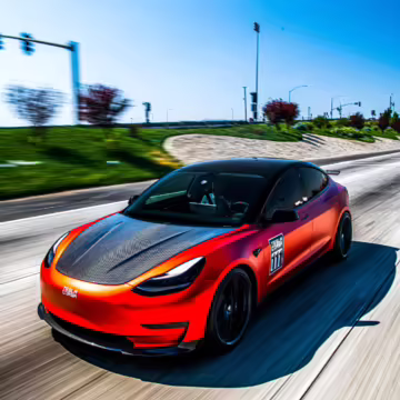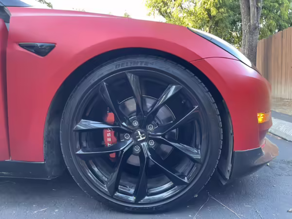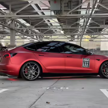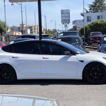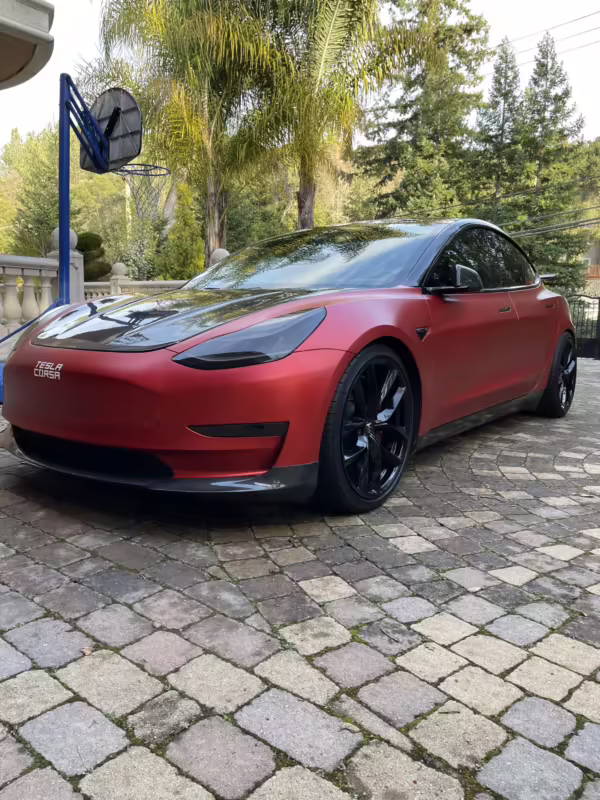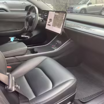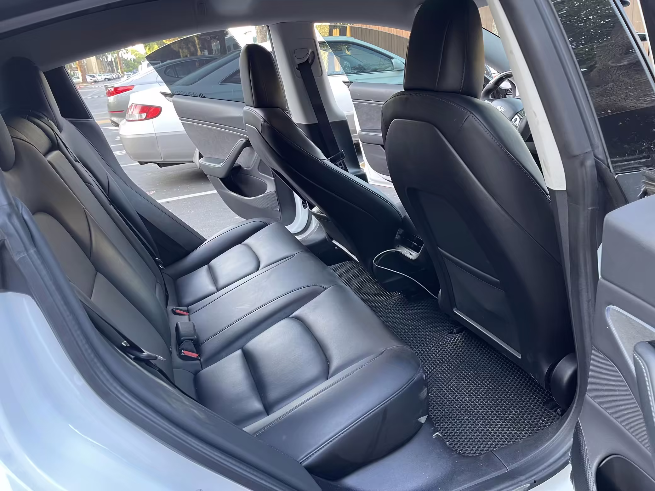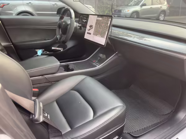 This Model 3 is powered by dual electric motors, which draw electricity from a lithium-ion battery pack to power the wheels with approximately 450 horsepower and 471 lb-ft of torque.