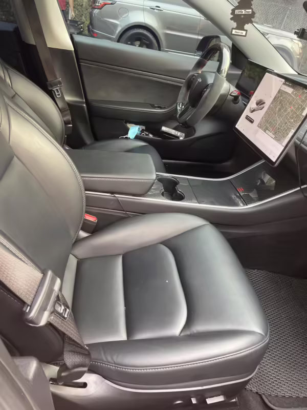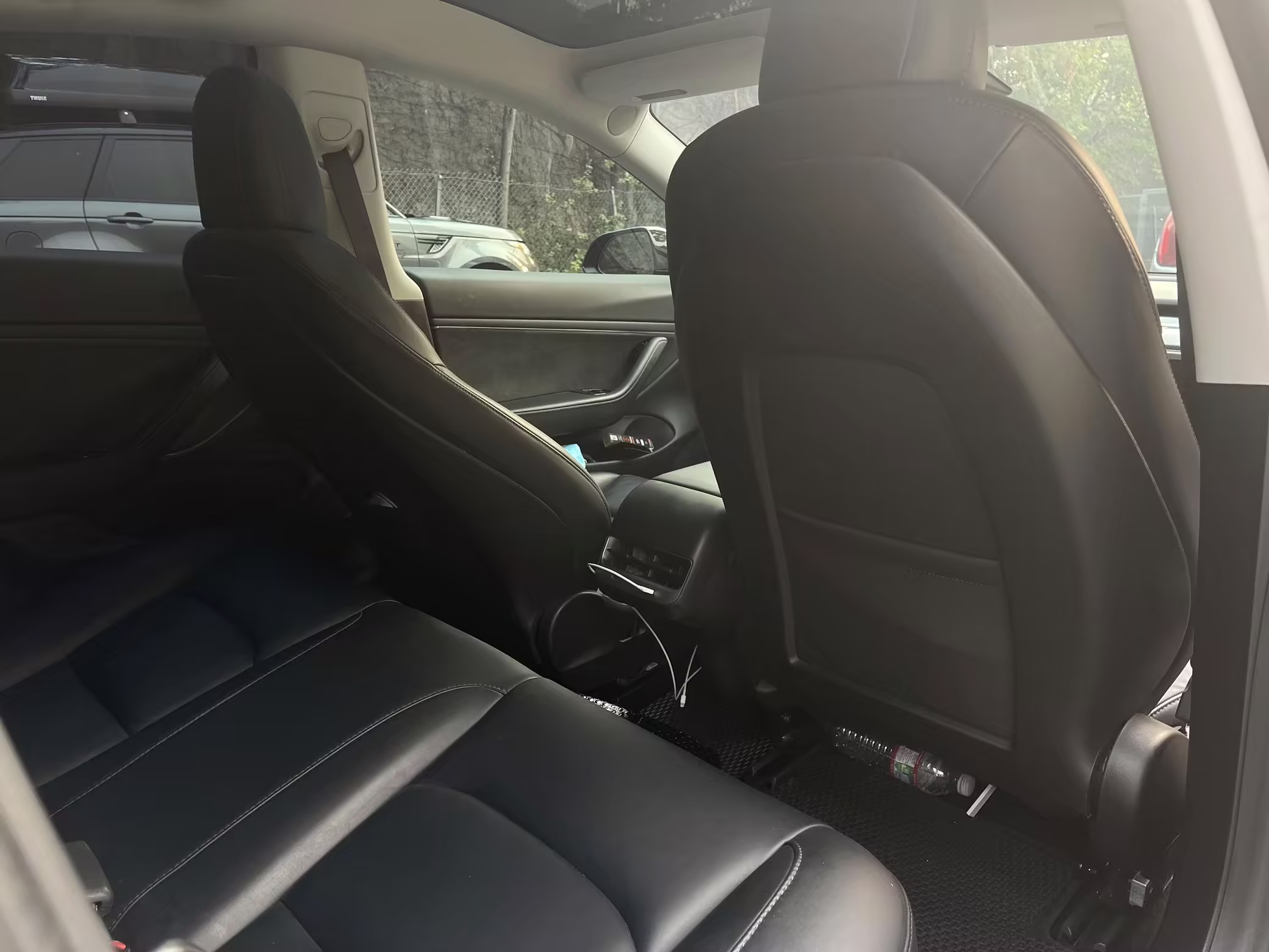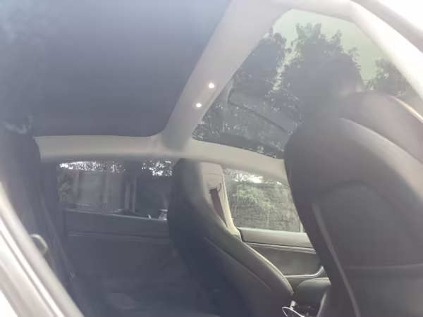 Equipment includes a panoramic roof, premium interior, heated front seats, fold-down rear seats, a navigation system, lane-keep assist, Wi-Fi and LTE connection, front and rear parking sensors, full self-driving capability, and autopilot.