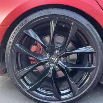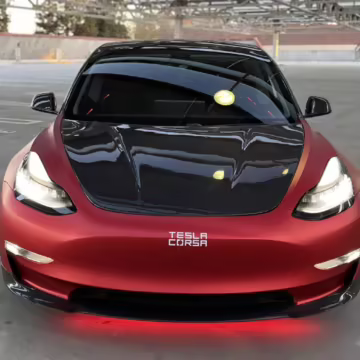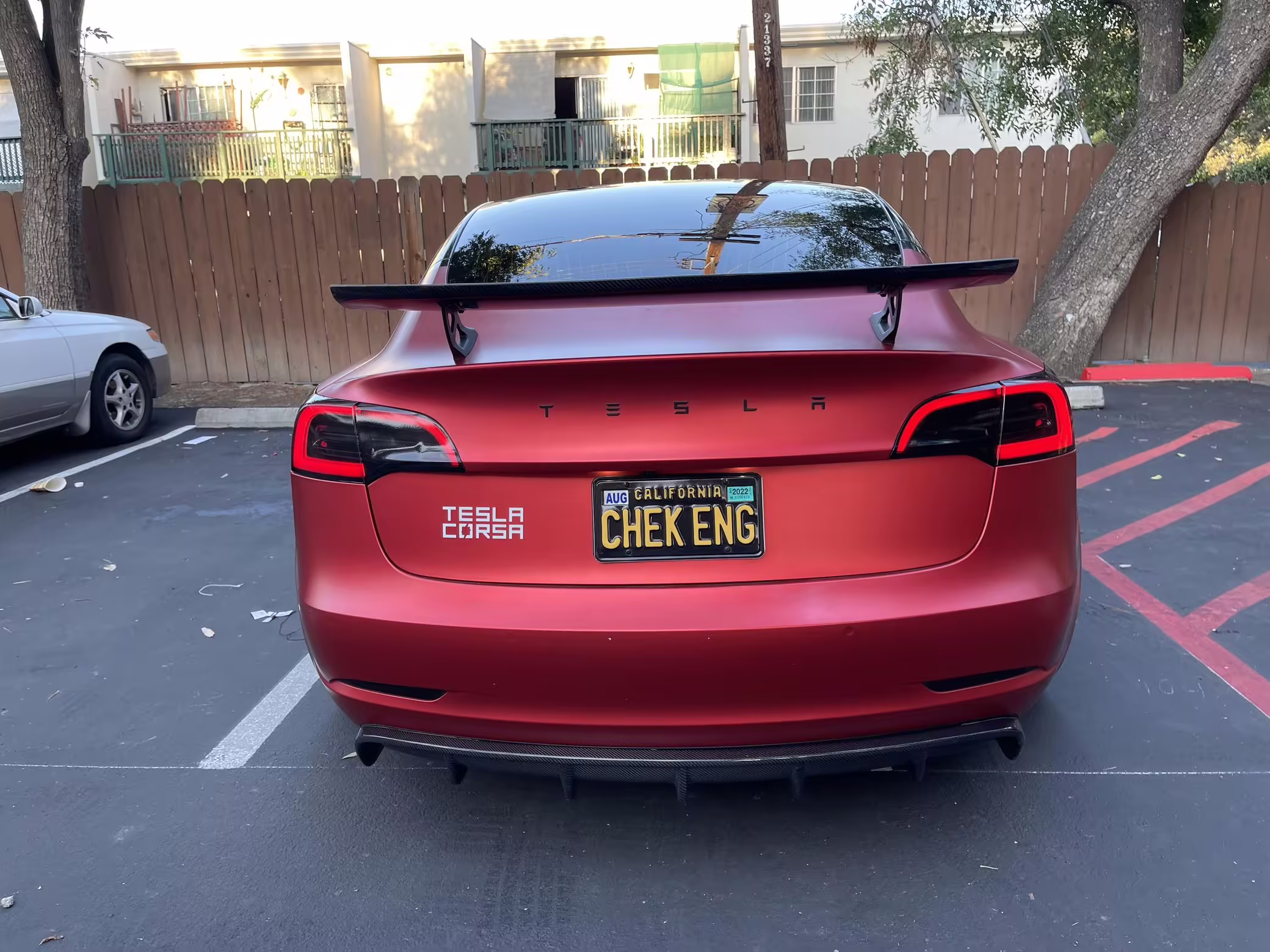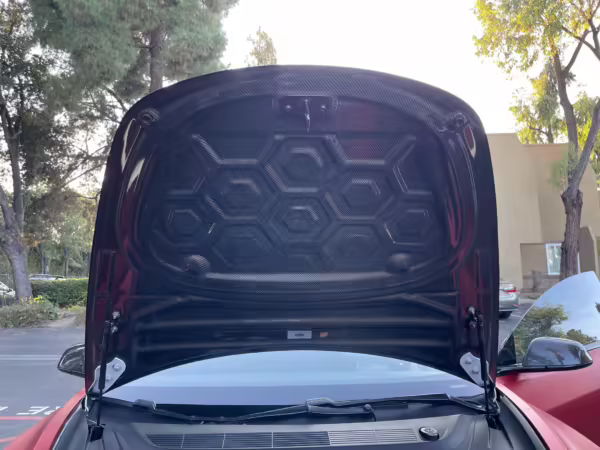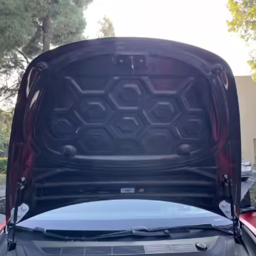 Carbon fiber hood, rear spoiler, mirror caps, front splitter, and rear diffuser