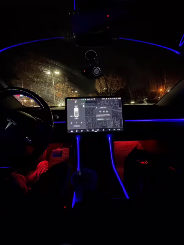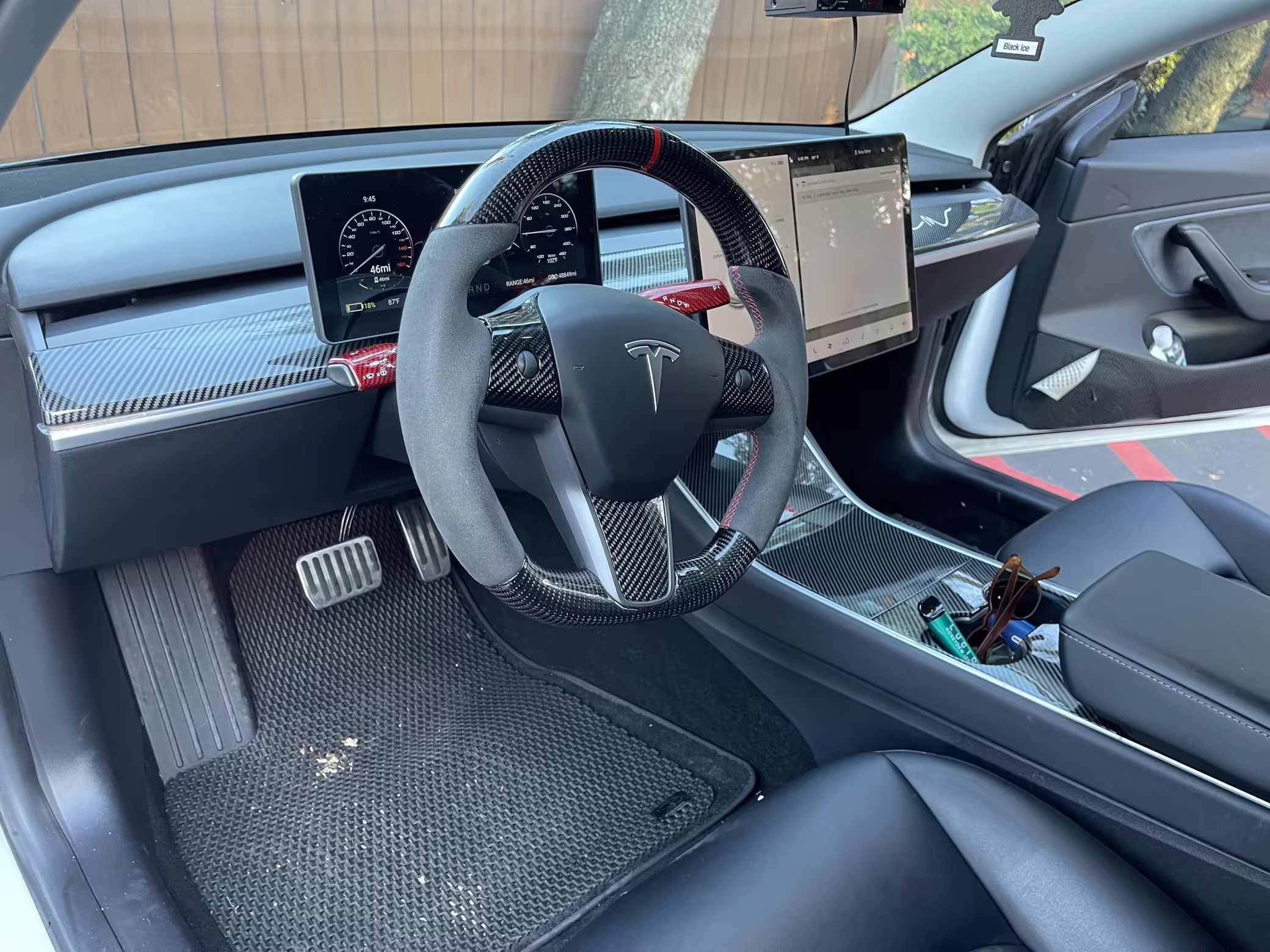 A partial list of modifications reported by the seller include a full exterior wrap, lowering springs, upgraded brake lines, Unplugged Performance brake pads, a carbon fiber hood, rear spoiler, mirror caps, and diffuser, carbon fiber interior trim, fiber optic interior lighting, a digital instrument panel, and underglow lights. The full list is shown below.