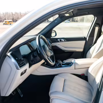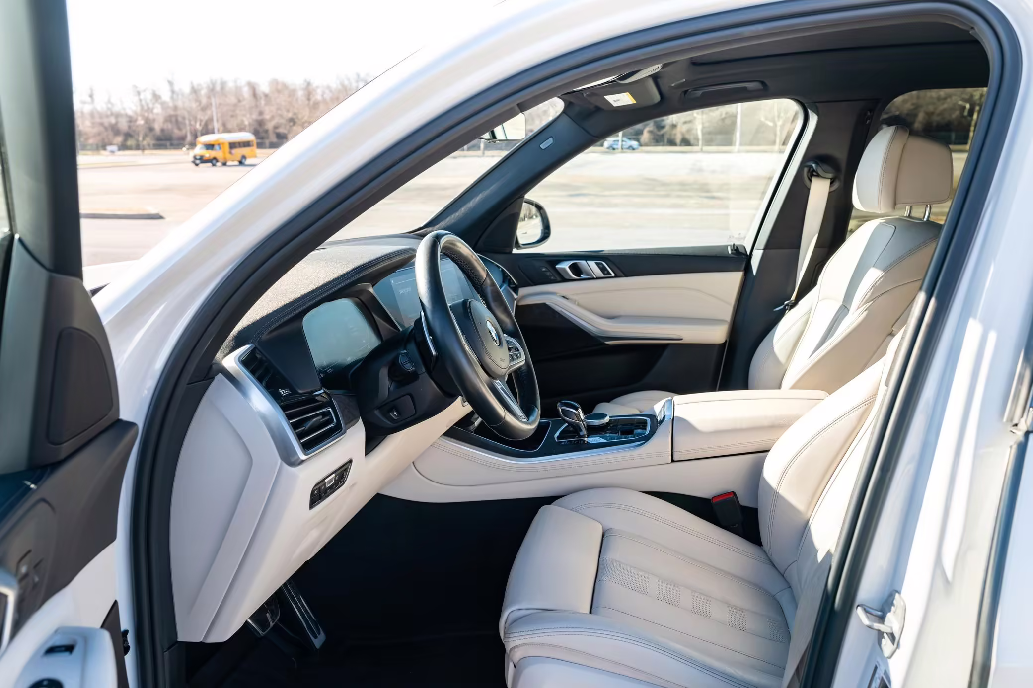The G05 BMW X5 is an excellent luxury SUV, boasting handsome styling, an impressive interior, and a fun driving character. This particular X5 xDrive40i is fitted with a potent turbocharged 6-cylinder engine and all-wheel drive, and it’s finished in the handsome color combination of Mineral White over an Ivory White Vernasca leather upholstery. It also boasts some great factory equipment, including the M Sport package, a panoramic sunroof, heated front seats, and 4-zone automatic climate control.