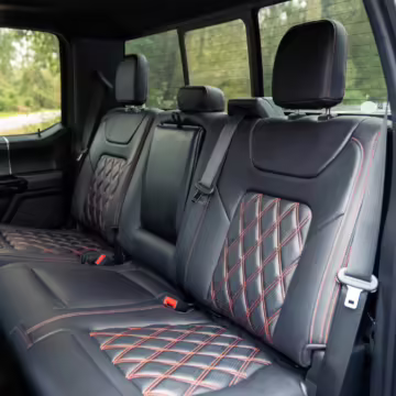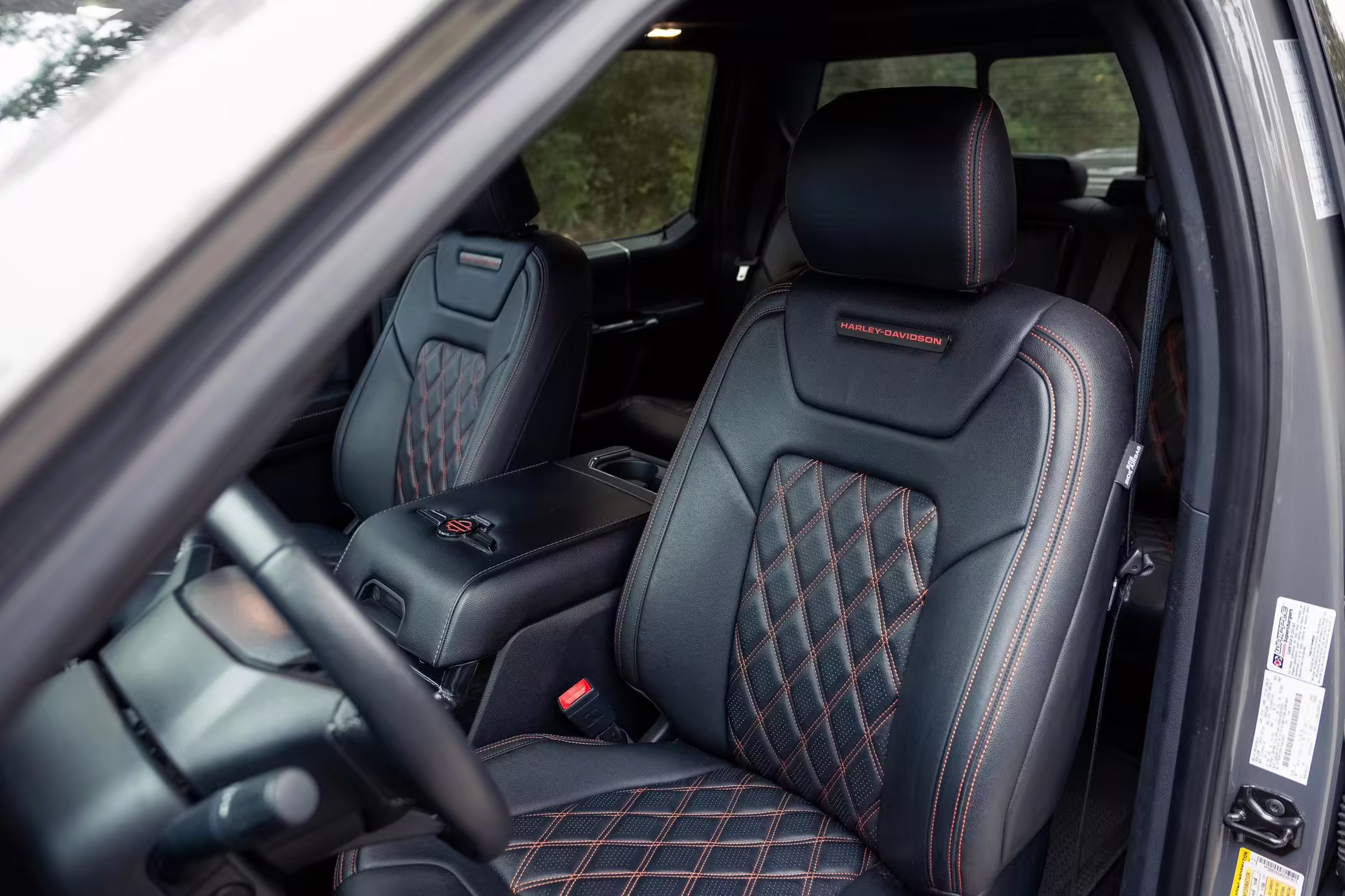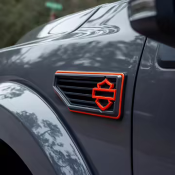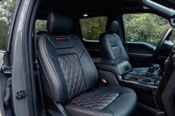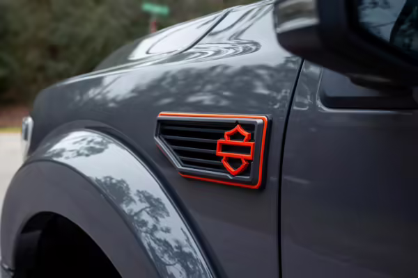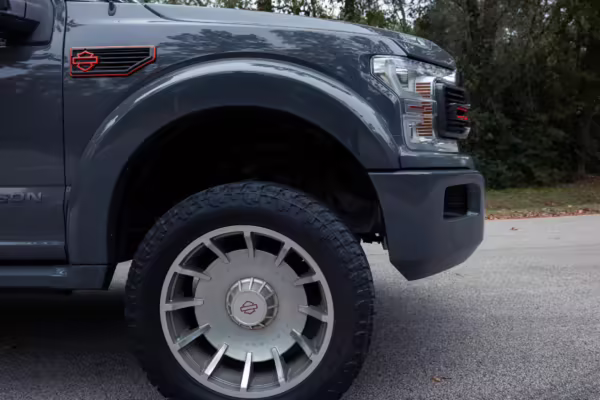 The Ford F-150 is a popular pickup truck with impressive capabilities and a wide array of available models intended to suit all needs. This particular F-150 has been modified as a Harley-Davidson Edition by Tuscany Motor Company, and it boasts an array of added equipment to enhance its looks and performance. Highlights include a supercharger, a BDS suspension lift with Fox Performance shocks, 22-inch “Fatboy Style” wheels, a Harley-Davidson tonneau cover, custom leather upholstery with orange diamond-pattern stitching, and so much more!