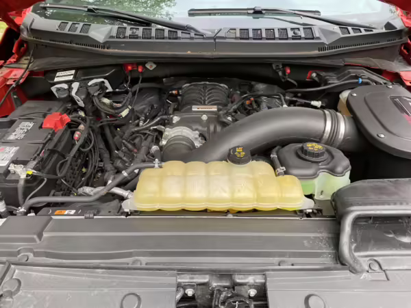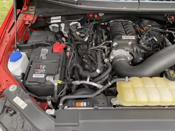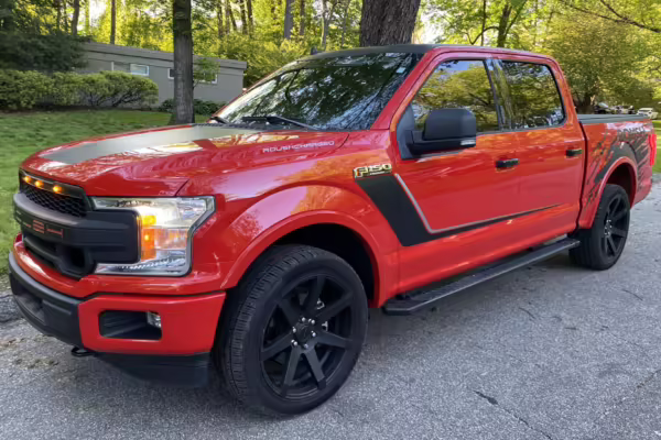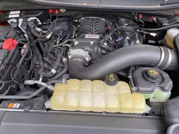 Power comes from a “Coyote” 5.0-liter V8 engine with a Roush Performance TVS R2650 supercharger system. According to Roush documentation in the gallery, it’s rated at 650 horsepower and 610 lb-ft of torque. Power is sent to all four wheels via a 10-speed automatic transmission.