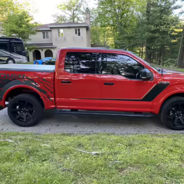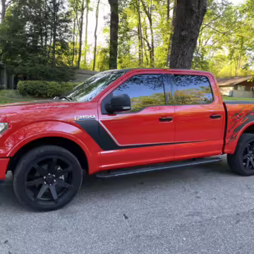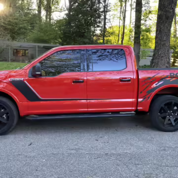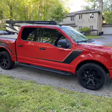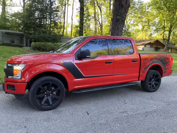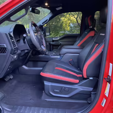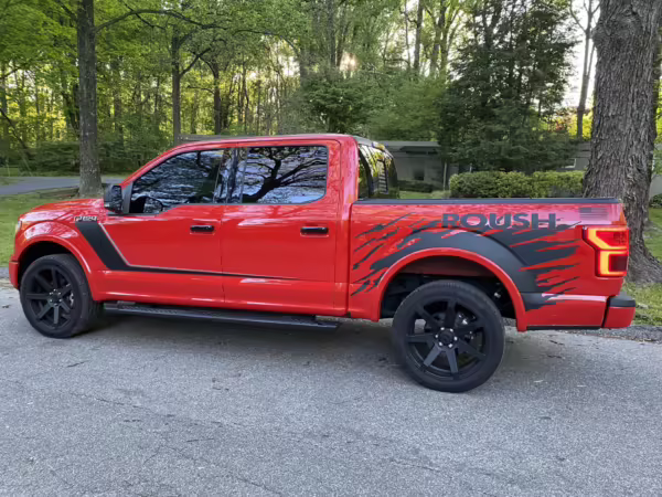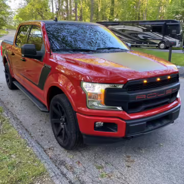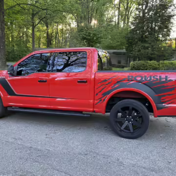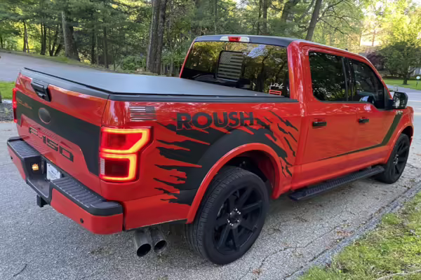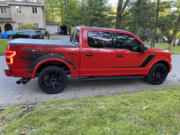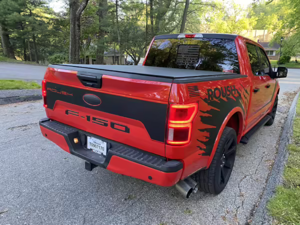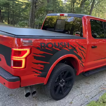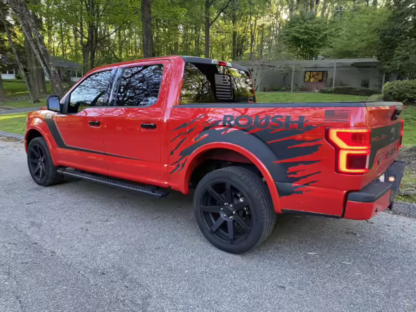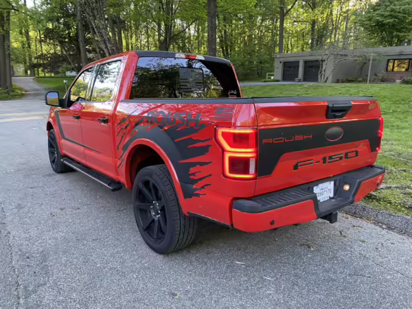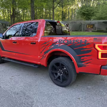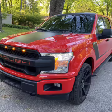 The Roush Nitemare package brings aesthetic and performance upgrades to the F-150. The Nitemare adds a supercharger, a sport lowering kit, serialized interior badging, and many aesthetic upgrades. Additional Roush options on this truck include an active exhaust system and the Nitemare Leather Seating Package. The Roush MSRP for this pickup is $75,970.