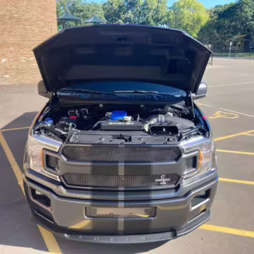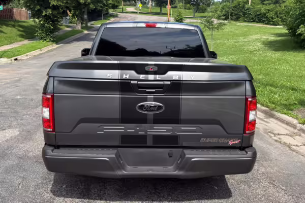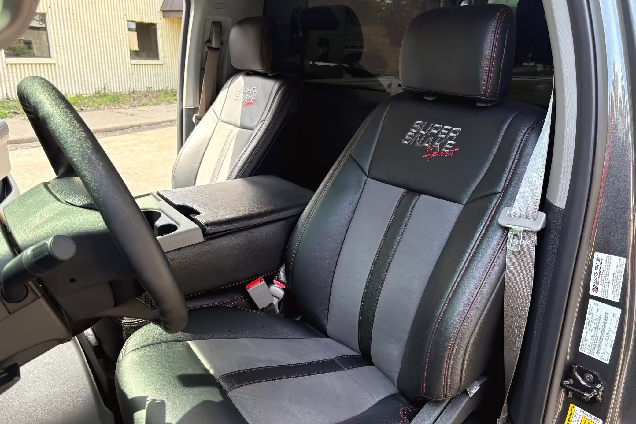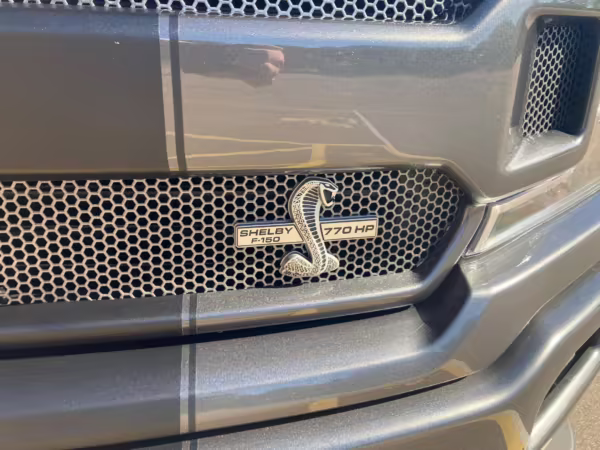 Shelby American reportedly built just 250 units of the F-150-based Super Snake Sport for 2020; this is number 15, according to the numbered plates in the engine bay and dashboard. It features a Whipple supercharger, a performance air intake system, a Borla exhaust system with bright tips, 22-inch wheels, a Stage 3 racing suspension system, carbon fiber interior trim, and a BedRug bed liner in the cargo box, among other Shelby equipment.
