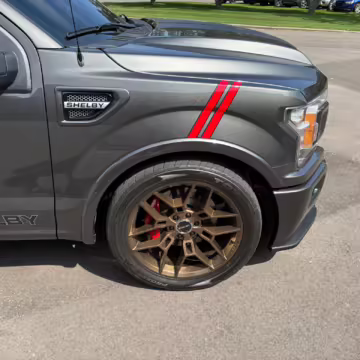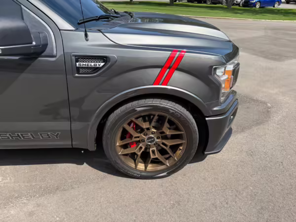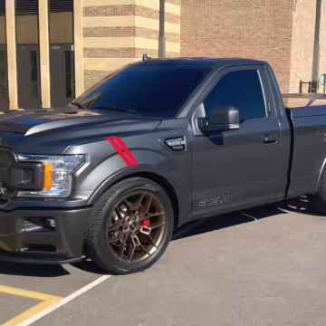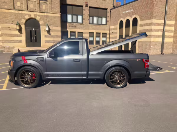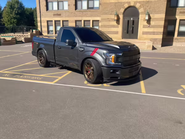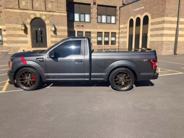 The Ford F-150 Shelby Super Snake Sport is a thrilling muscle truck that boasts impressive performance, thanks to a supercharged V8 engine rated at an immense 770 horsepower. This particular example is a Regular Cab model, which means less weight and more performance – and it boasts some excellent equipment like a Borla exhaust system, 22-inch wheels, and a Stage 3 racing suspension system.
