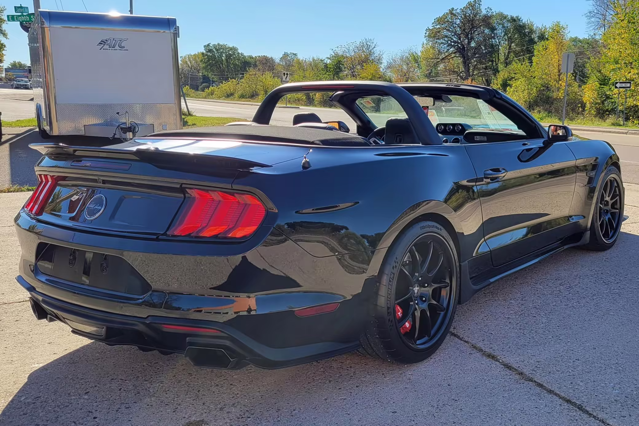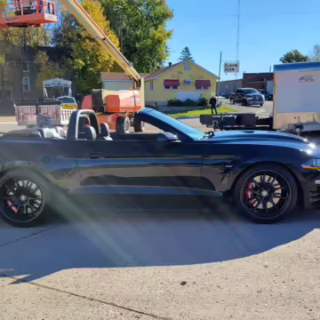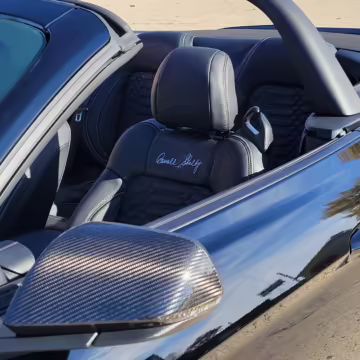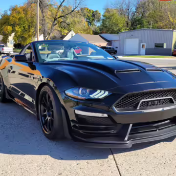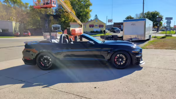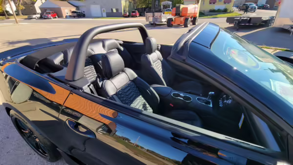 This is really, really cool! It’s one of only 50 Carroll Shelby Signature Series Mustang GTs built by Shelby American, and it boasts a supercharged Coyote V8 with an outrageous 825 horsepower! It also touts a host of other Shelby performance enhancements to the engine, suspension, and brakes, and it features unique exterior and interior trim – plus it looks especially sinister in triple black with matte black stripes! Another benefit is that it’s a convertible model, which will really let the driver hear the snarl of the Borla exhaust.