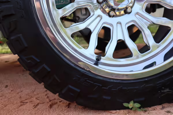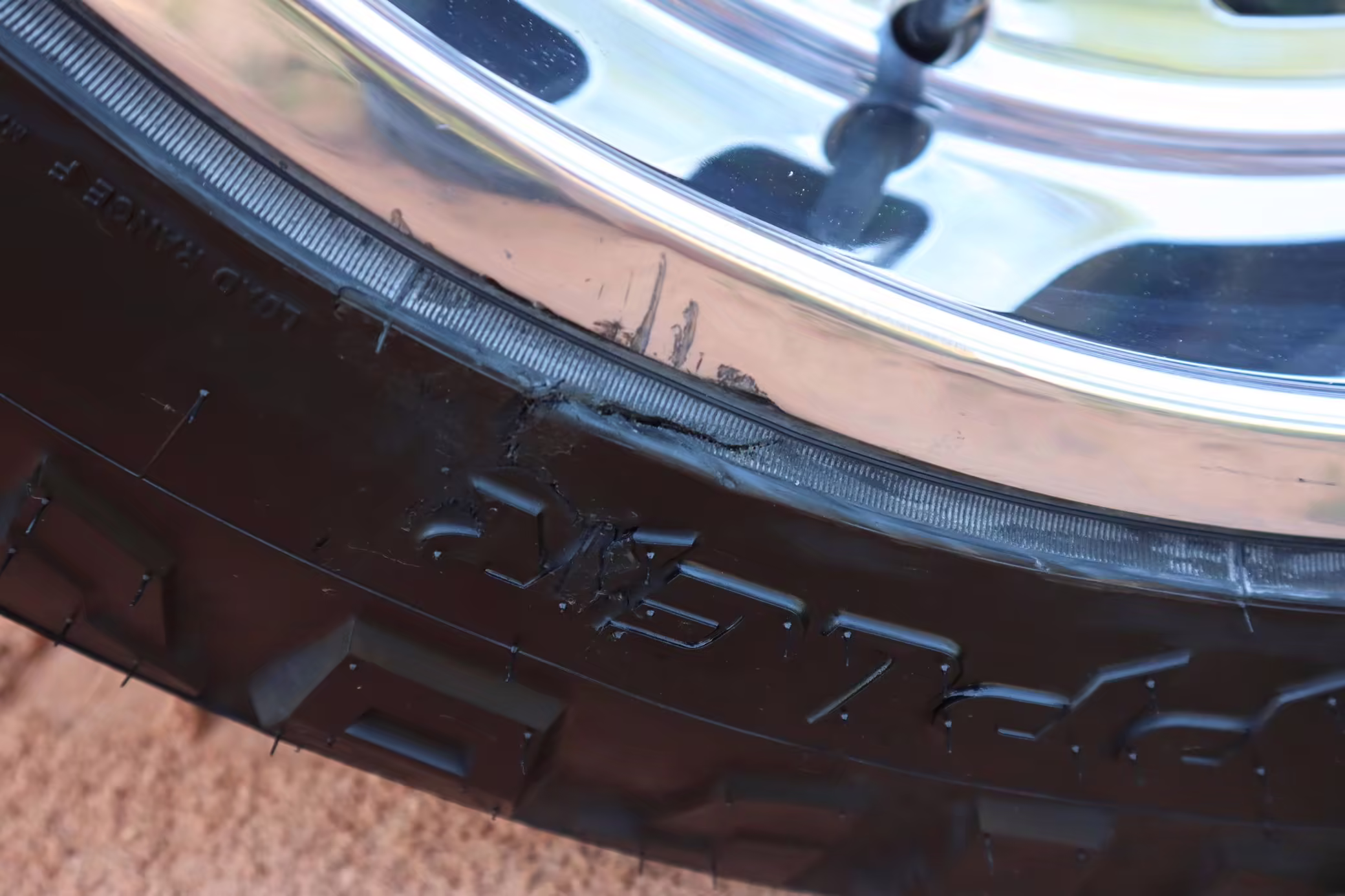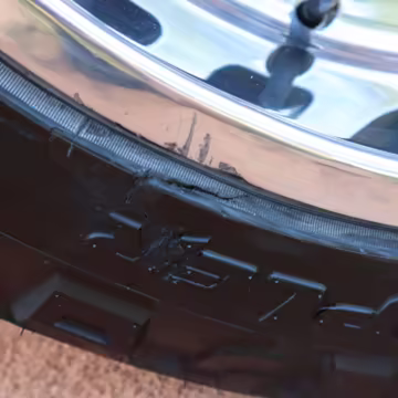 Left-front tire sidewall damaged (shown in gallery)