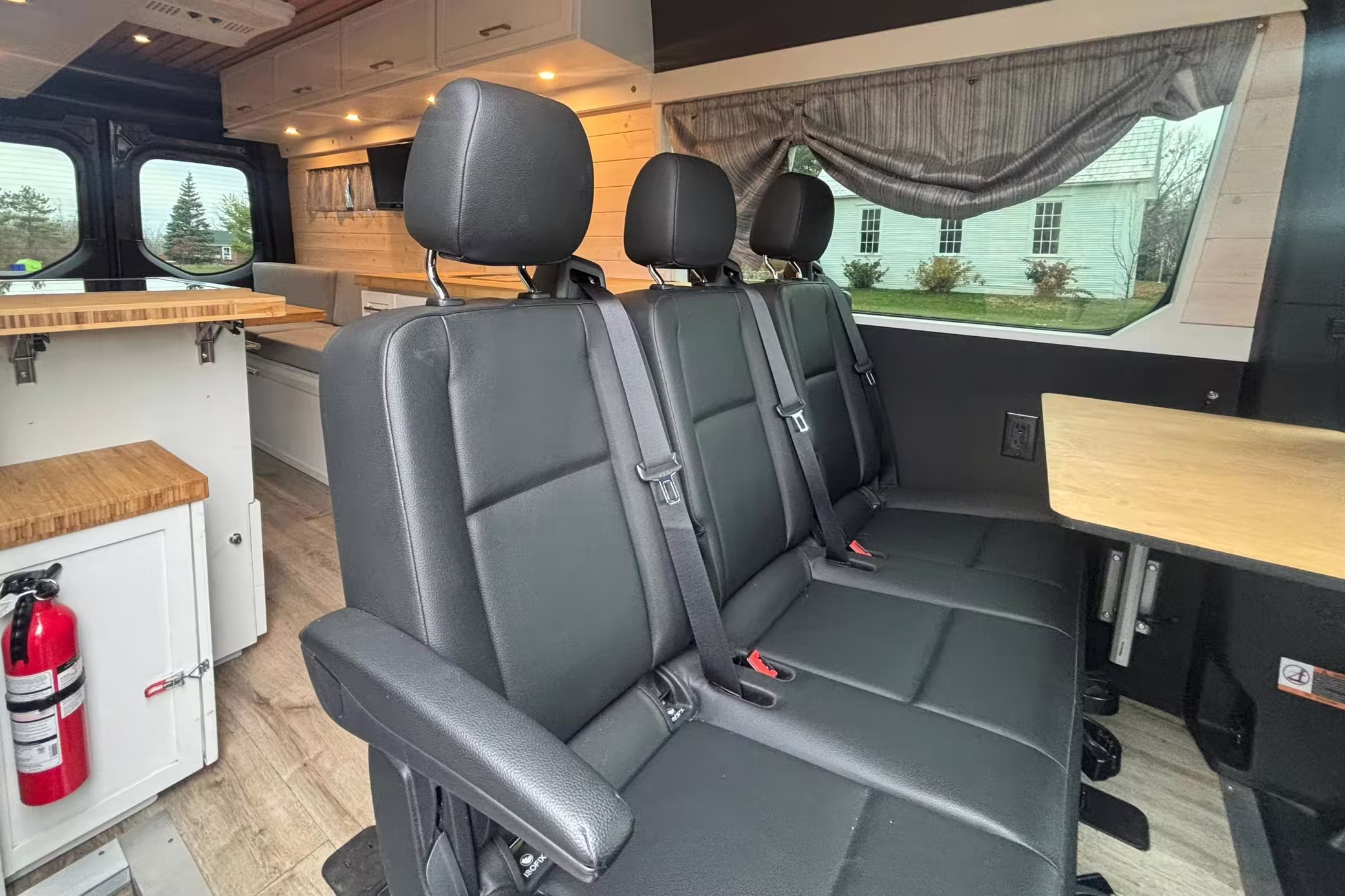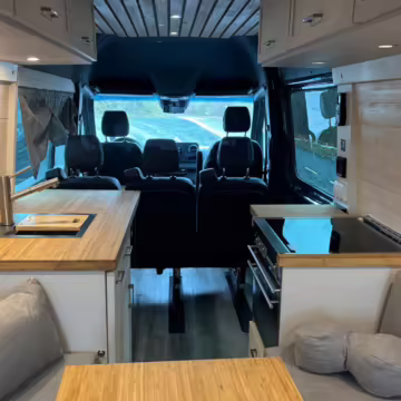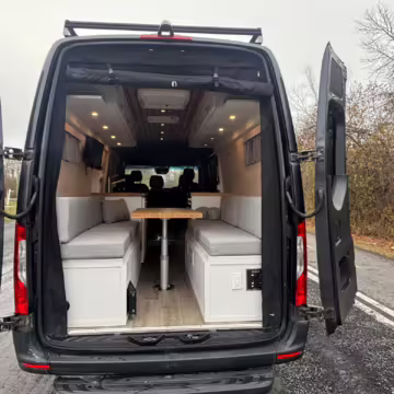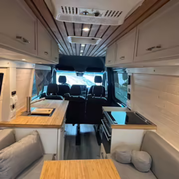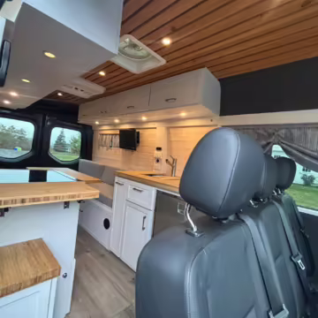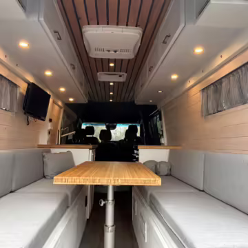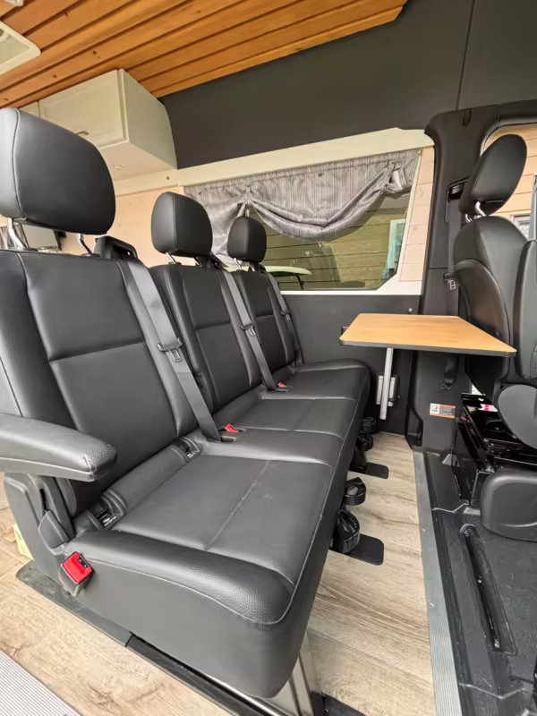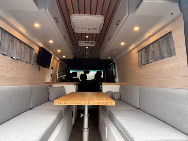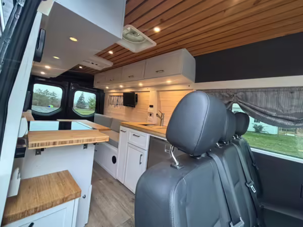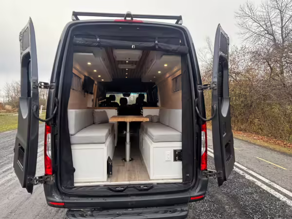 The Mercedes-Benz Sprinter is one of the most versatile vans on the market, and an excellent foundation for any type of conversion – as this particular camper van demonstrates. It’s been converted by Vanlife Sagas in Canada, and it features some great modifications like a roof-mounted air conditioner, a programmable diesel heater, two 180W solar panels, a Lagoon swivel-mounted table, a full-size convertible main table bed, and a full kitchen.