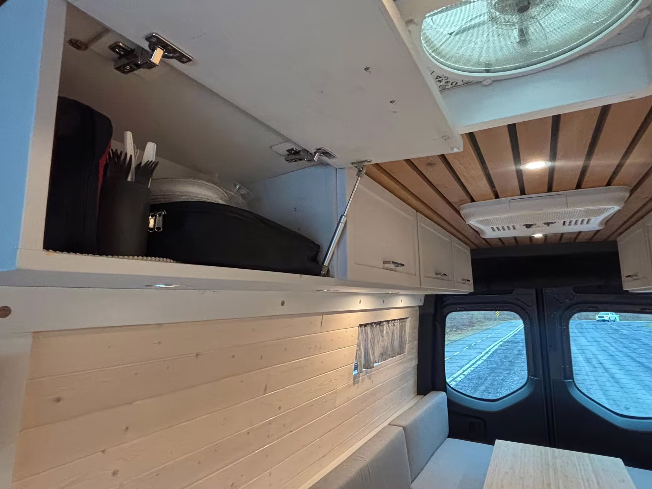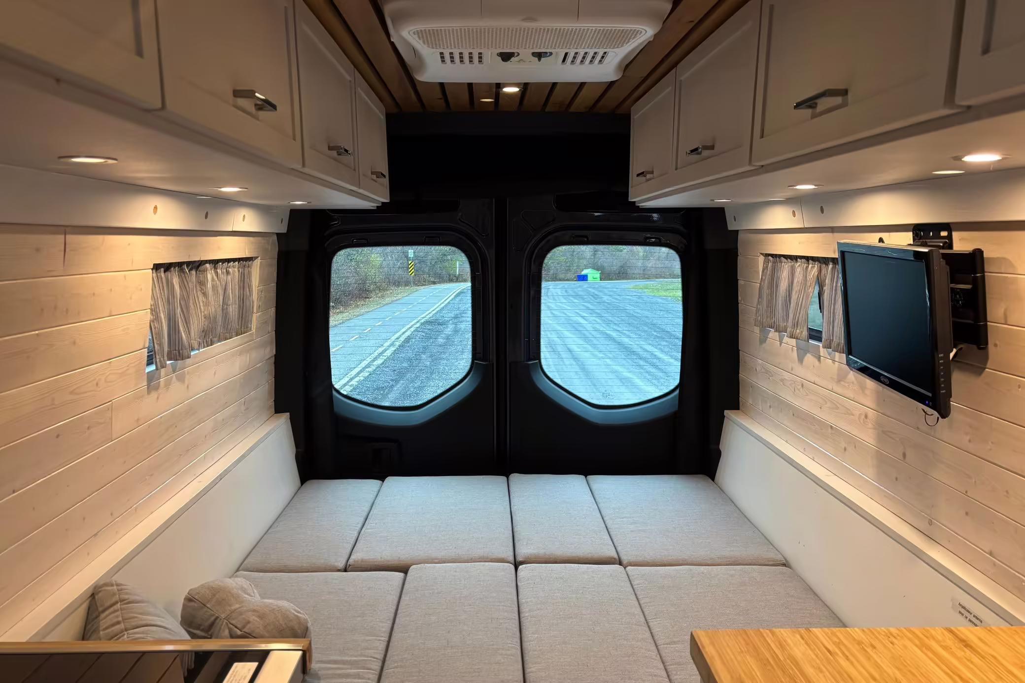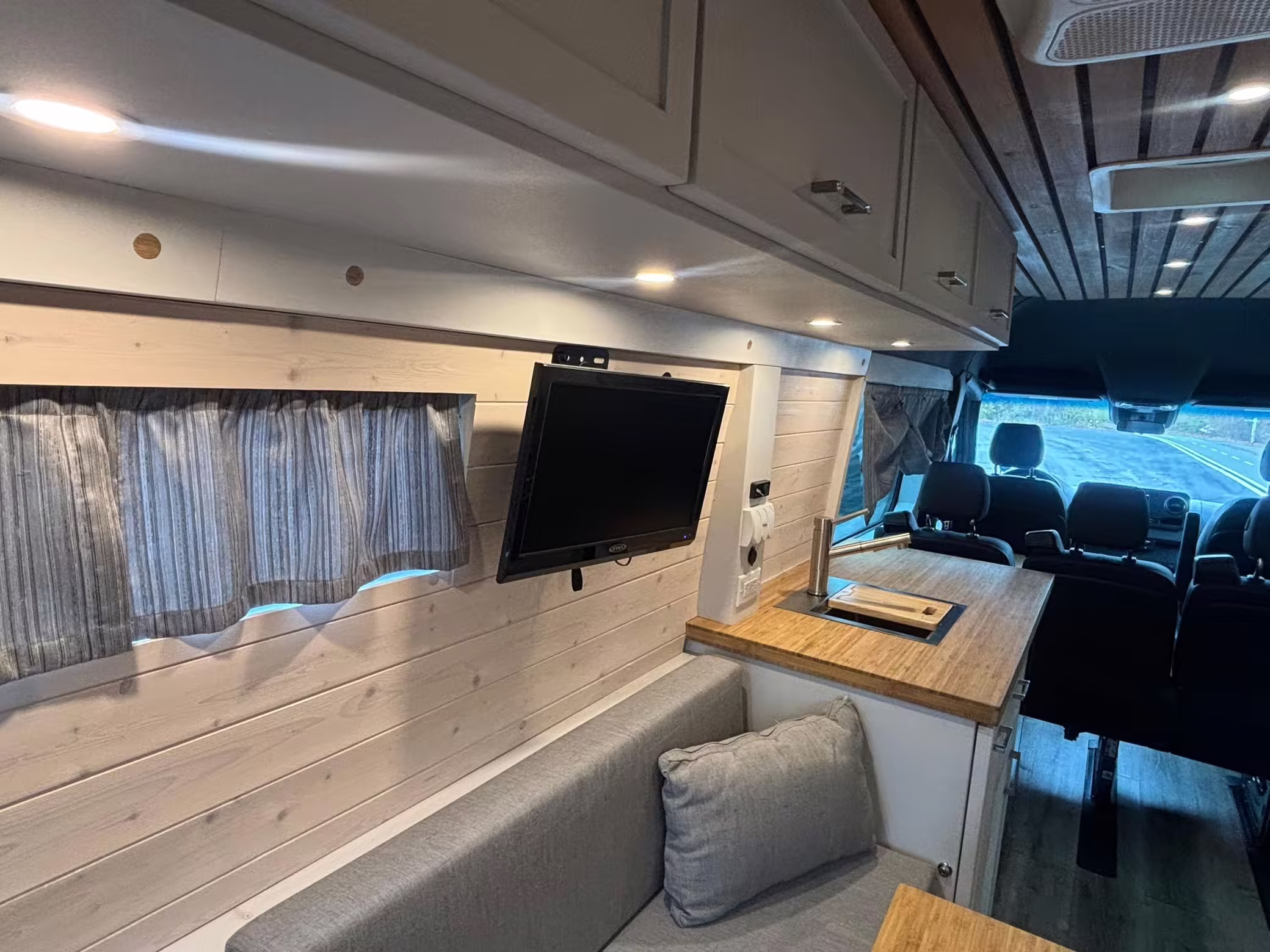 The Mercedes-Benz Sprinter is one of the most versatile vans on the market, and an excellent foundation for any type of conversion – as this particular camper van demonstrates. It’s been converted by Vanlife Sagas in Canada, and it features some great modifications like a roof-mounted air conditioner, a programmable diesel heater, two 180W solar panels, a Lagoon swivel-mounted table, a full-size convertible main table bed, and a full kitchen.
