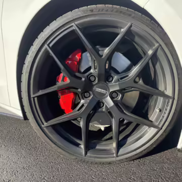 The seller has modified this modified with a staggered set of Vossen HF-5 wheels, paint protection film in the high-impact areas, and a limited edition Hennessey Performance exhaust.