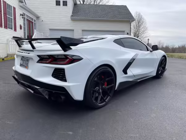 Power comes from a 6.2-liter “LT2” V8, rated at 495 horsepower and 470 lb-ft of torque. Due to the modifications performed to this Corvette, it may produce more power, but a dyno sheet was not provided to confirm. It spins the rear wheels via an 8-speed dual-clutch automatic transmission.