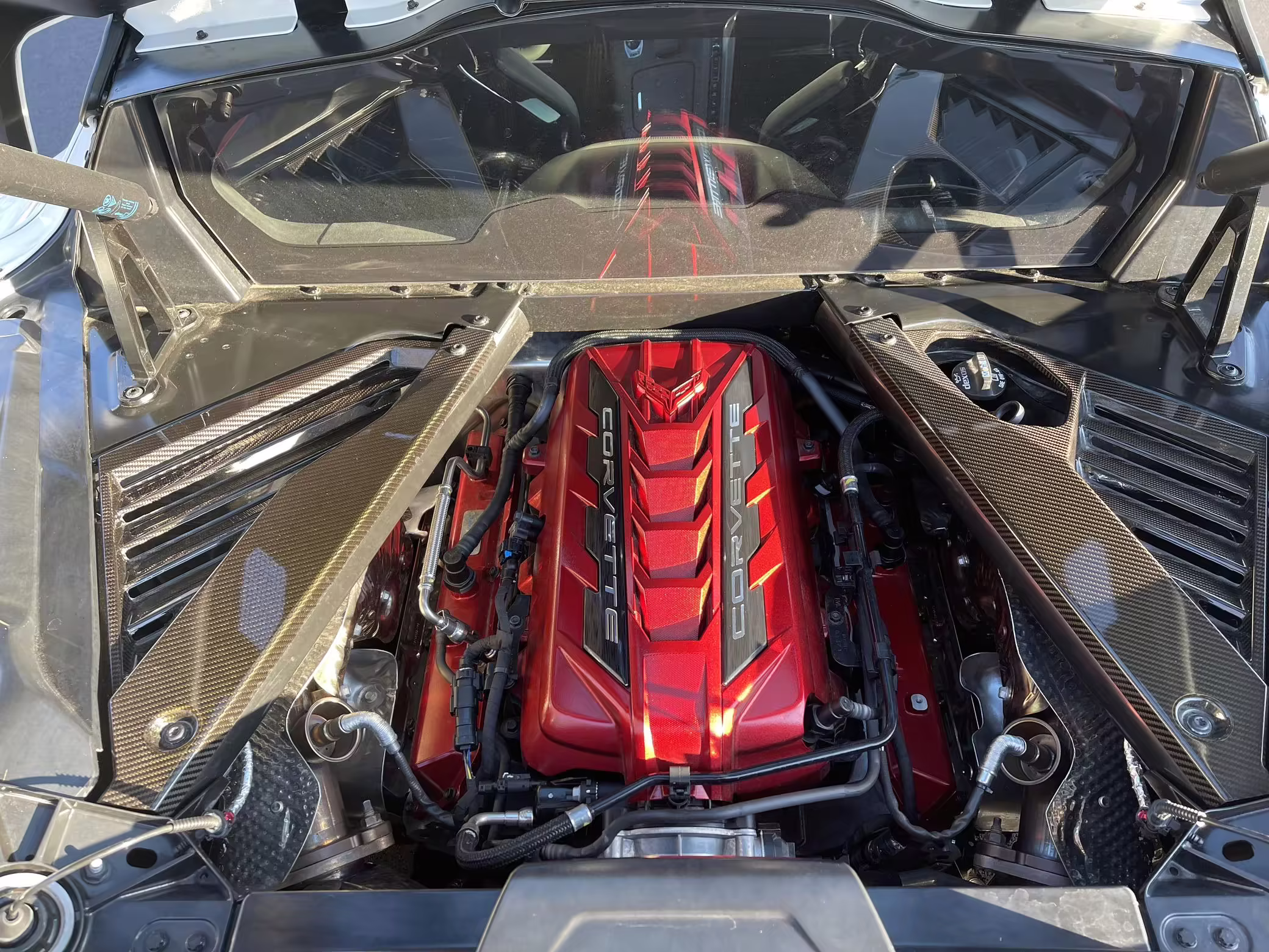 Engine cover painted red