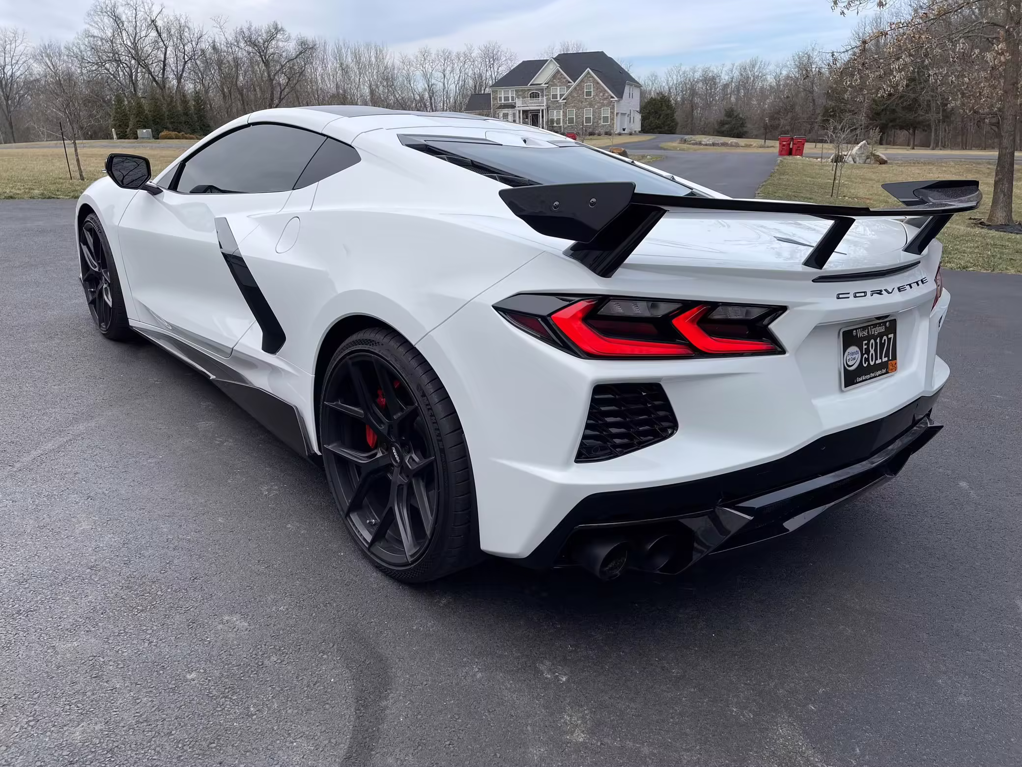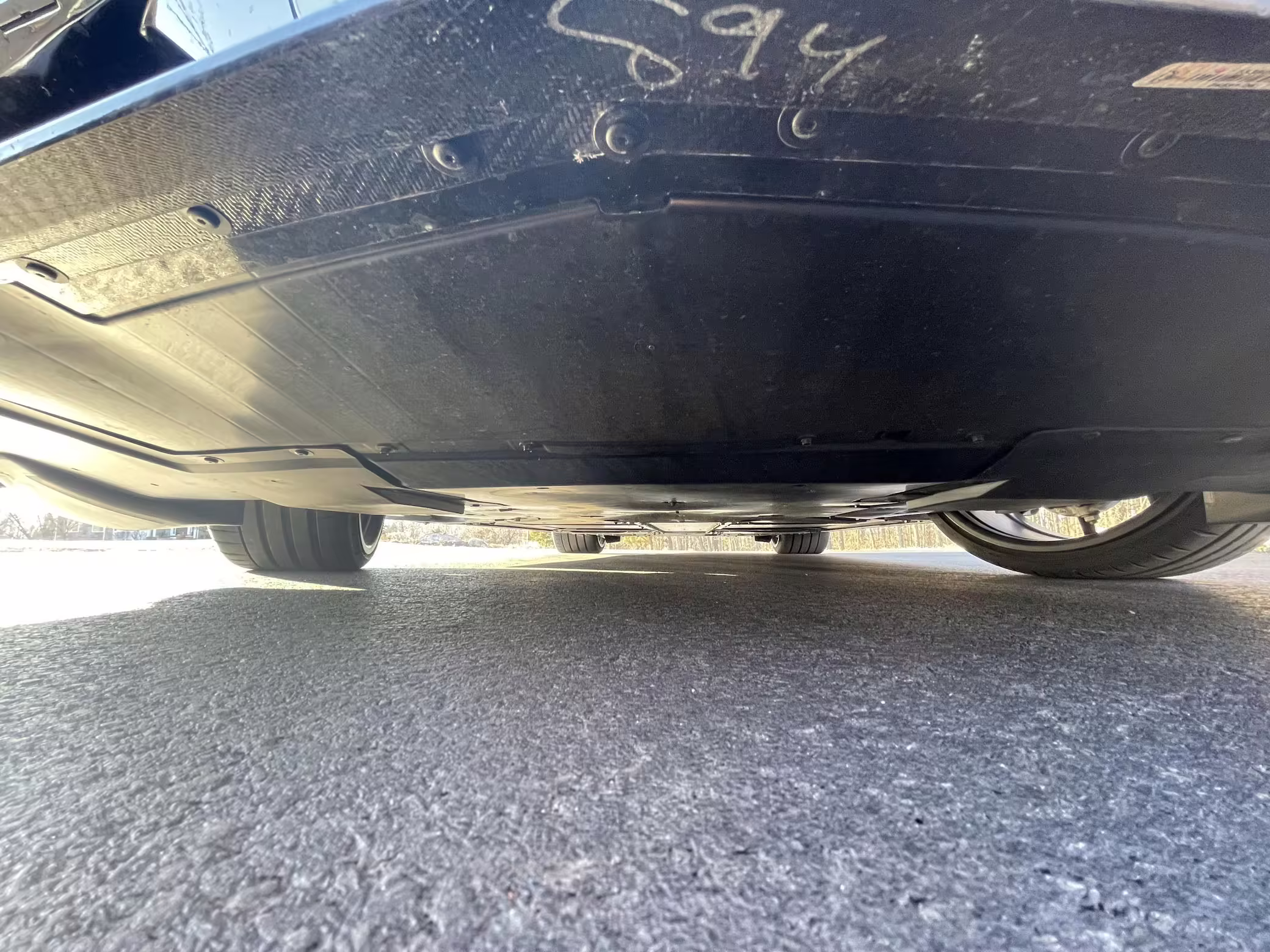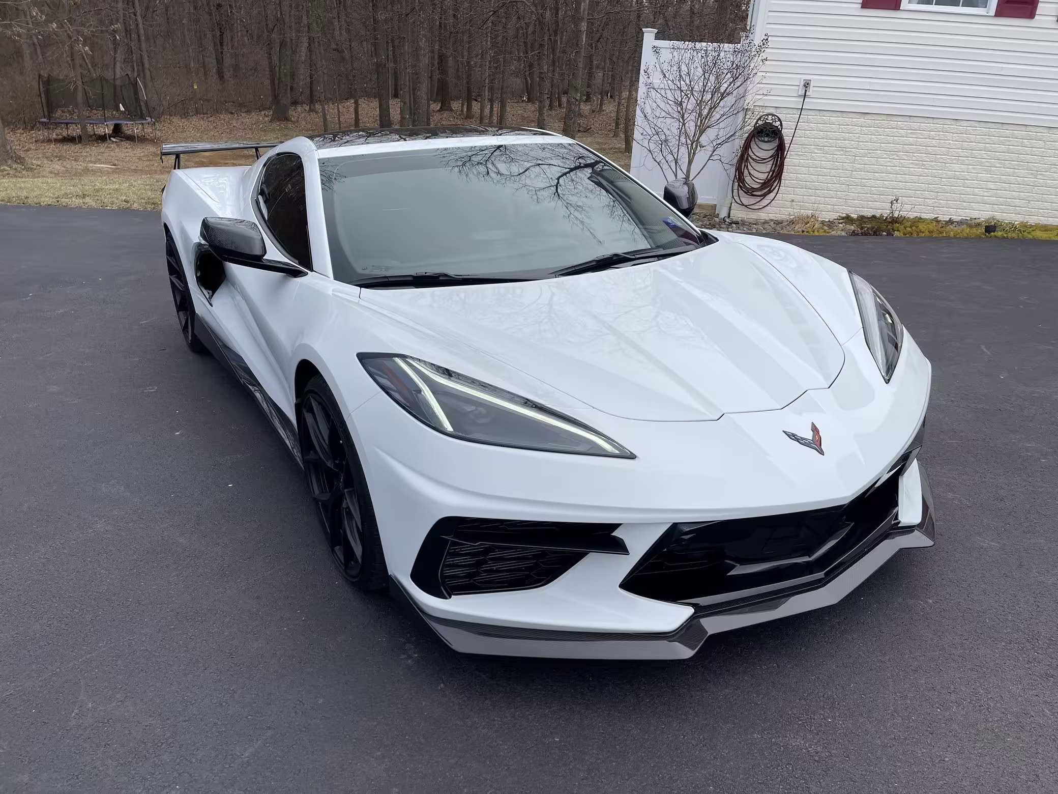Paint protection film applied to the front bumper, hood, front fenders, side mirrors, A-pillars, the bottom half of each door, behind the rear wheels, and on the wing.