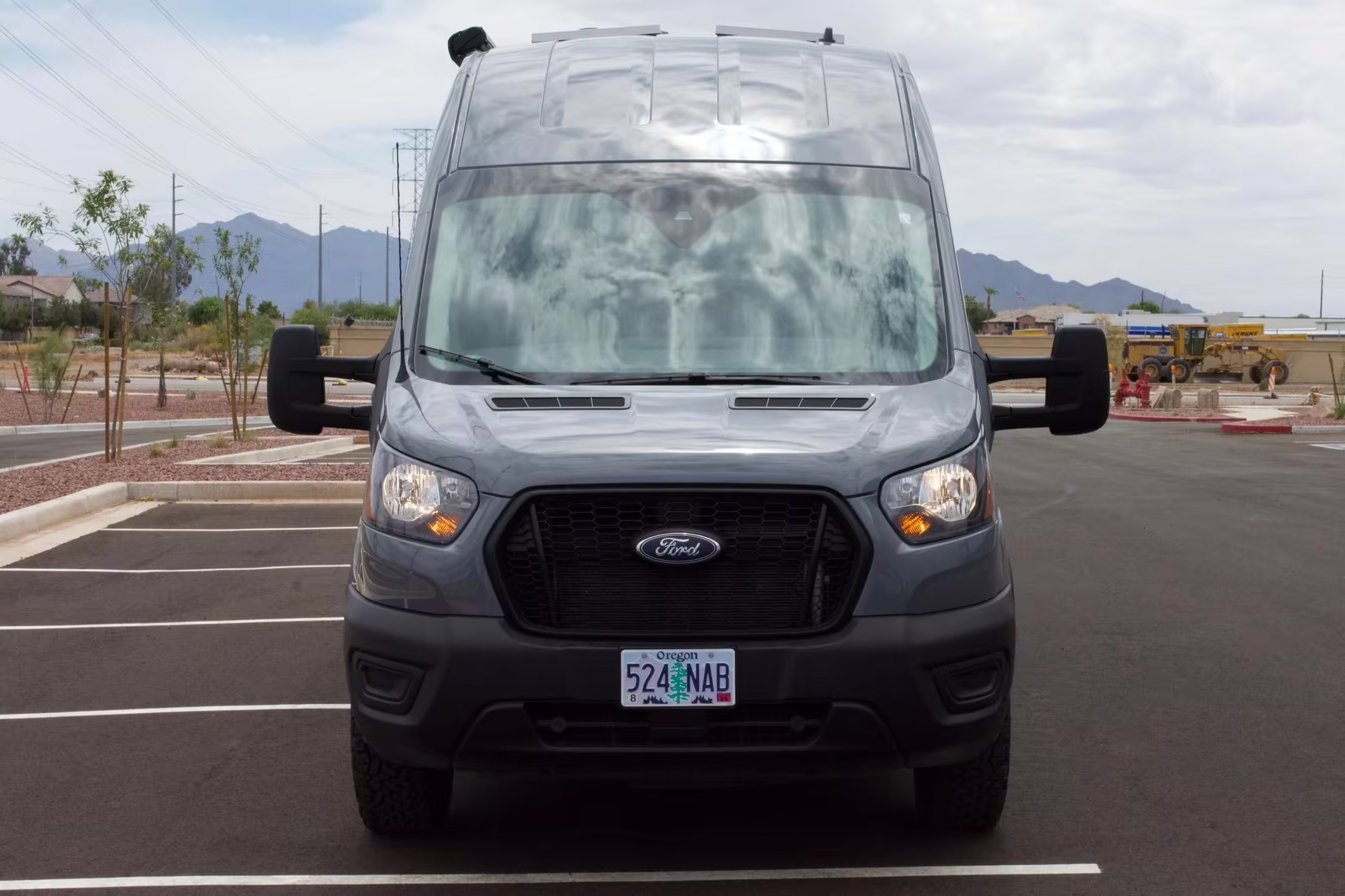 2021 Ford Transit 250, finished in Abyss Gray with a Dark Palazzo Gray interior.