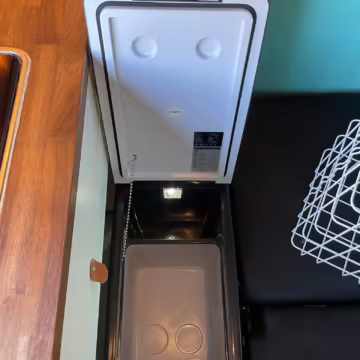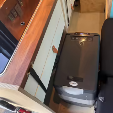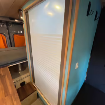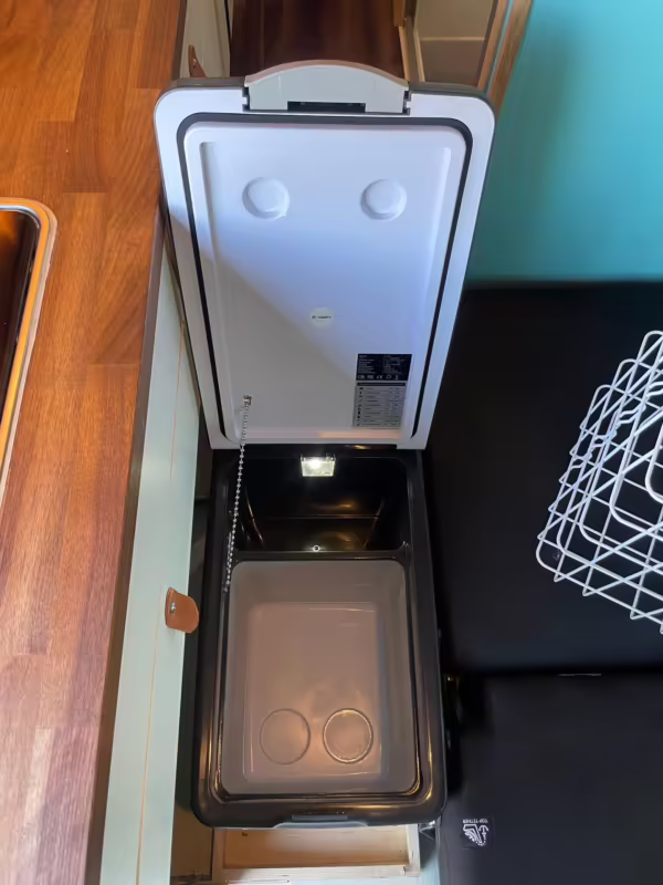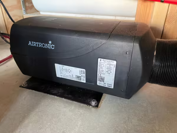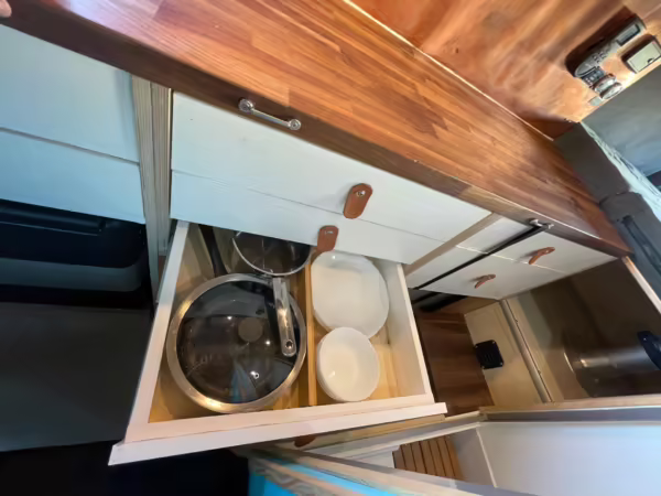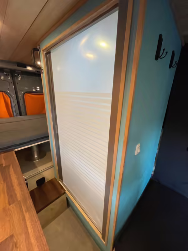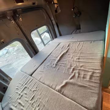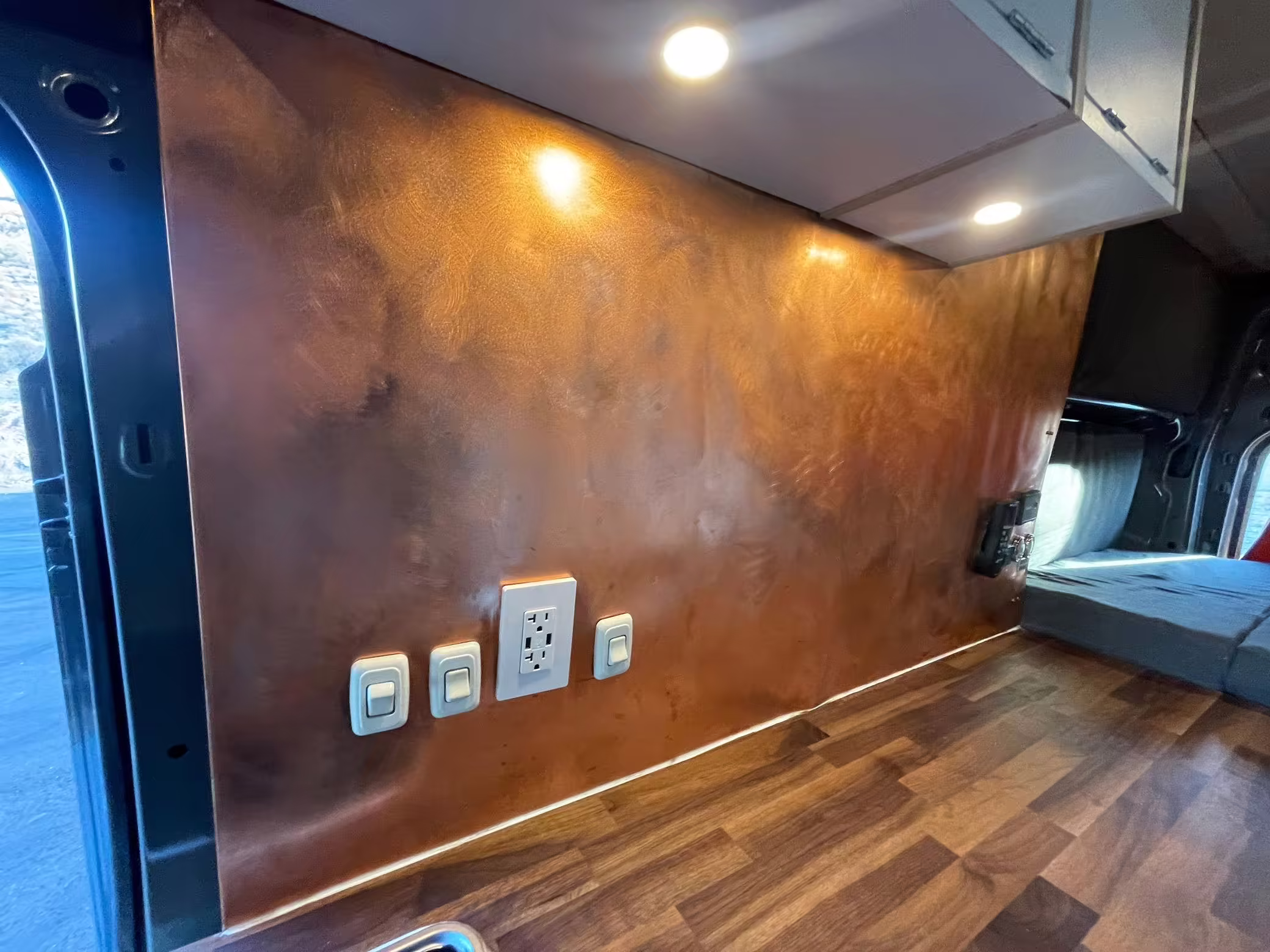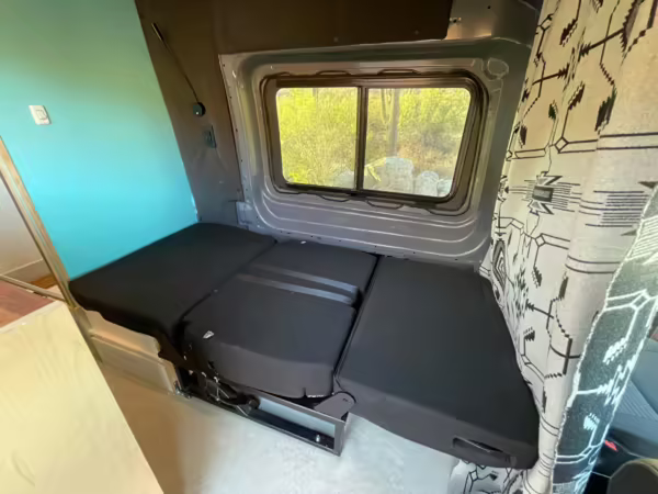 2 100-watt solar panels and 2 200 amp-hour batteries located in the rear of the van
