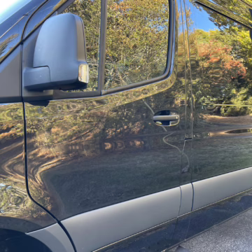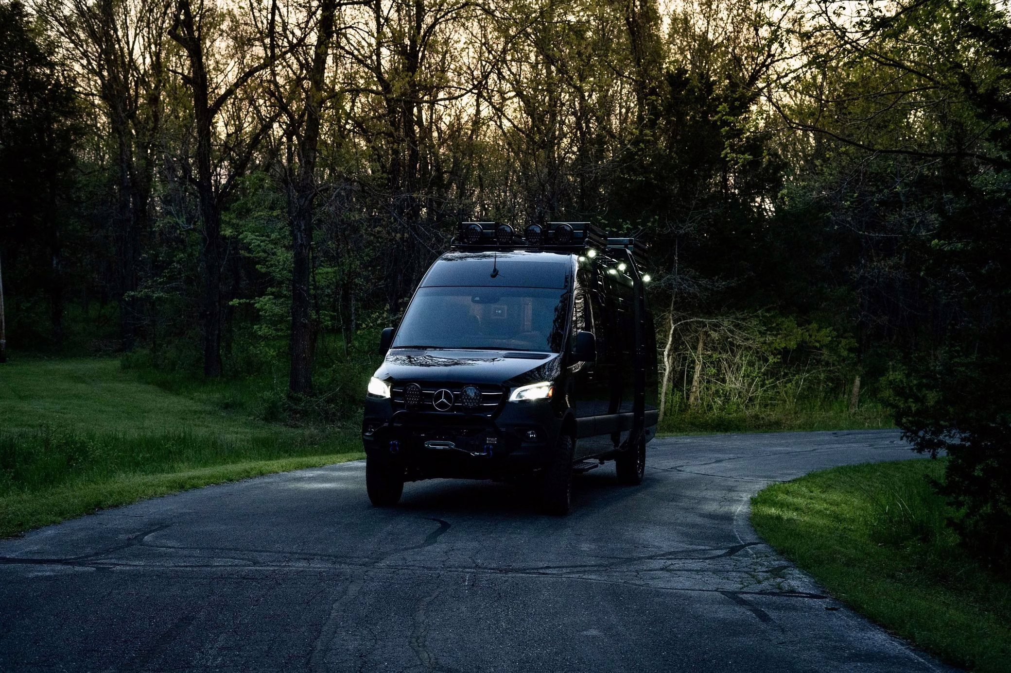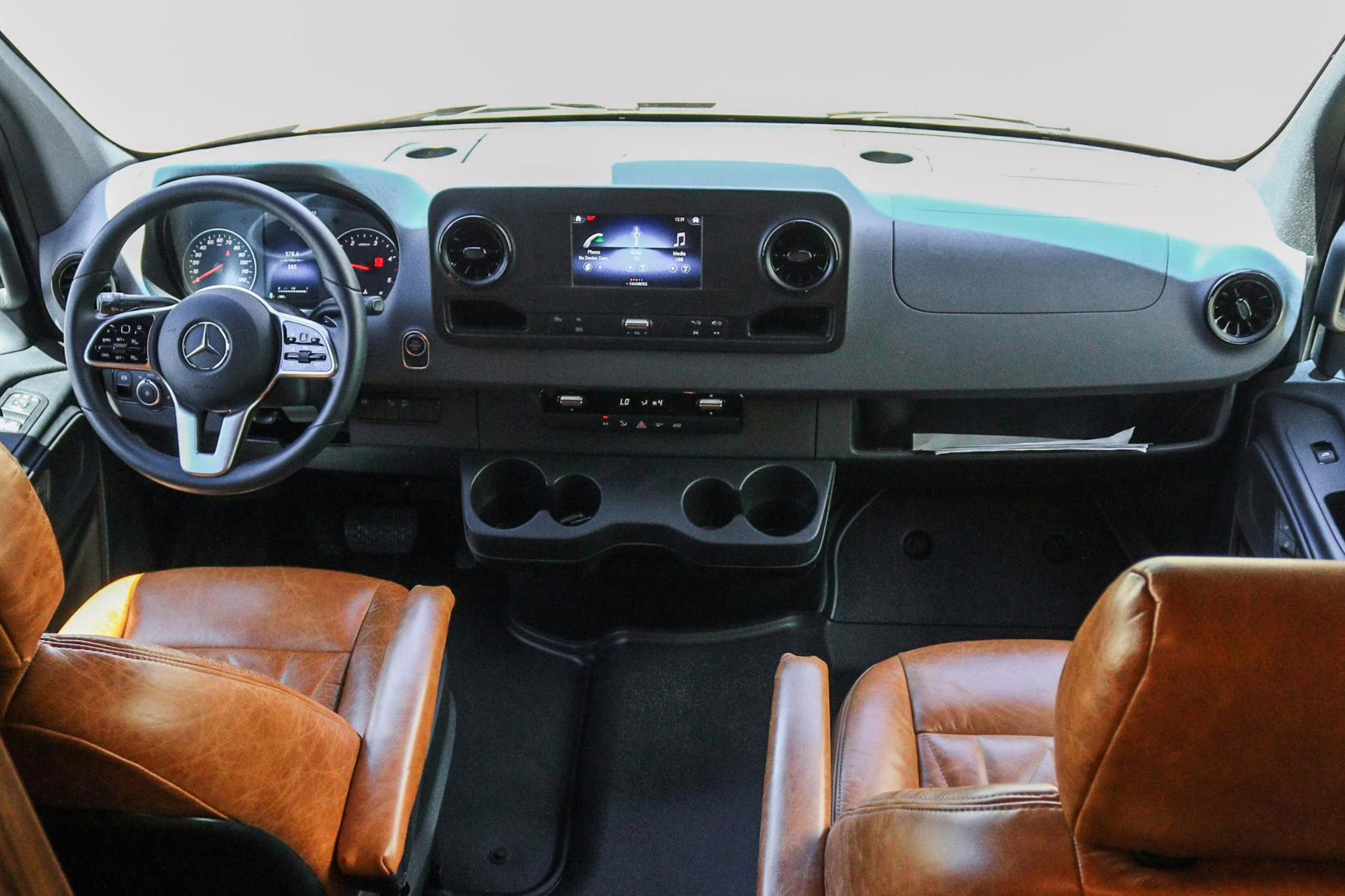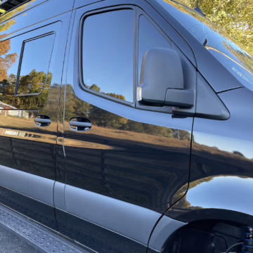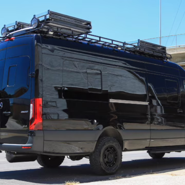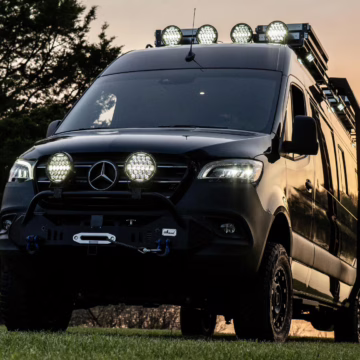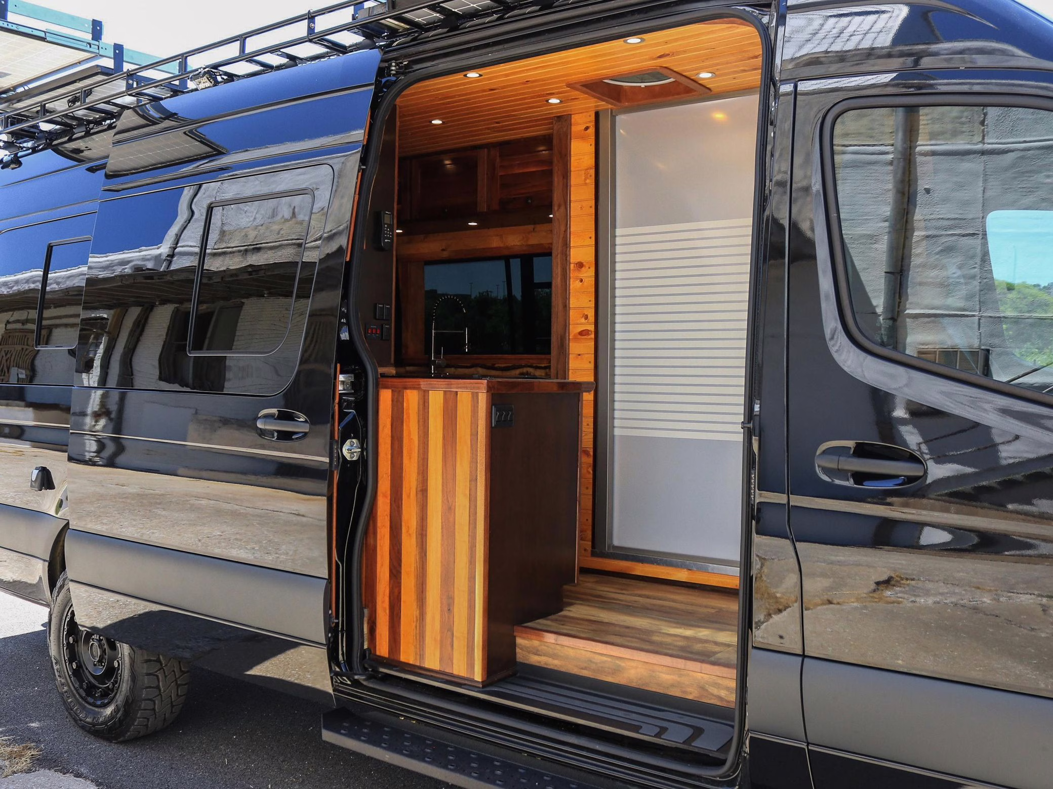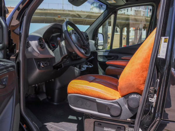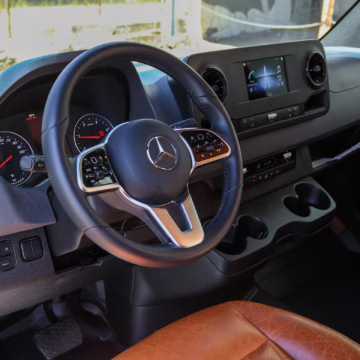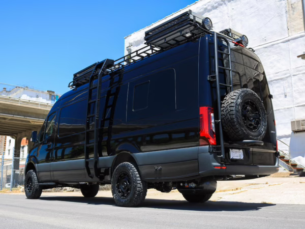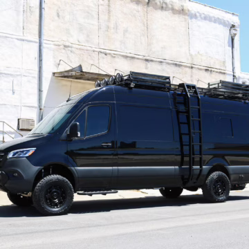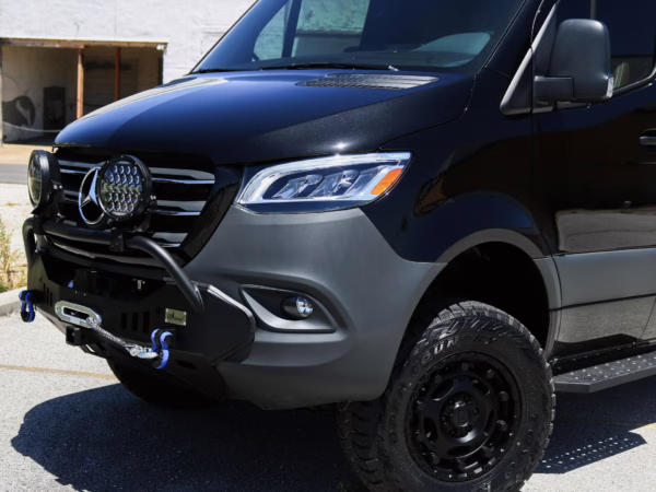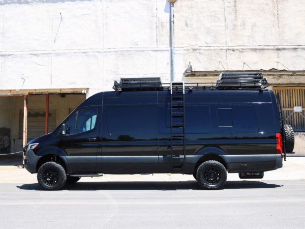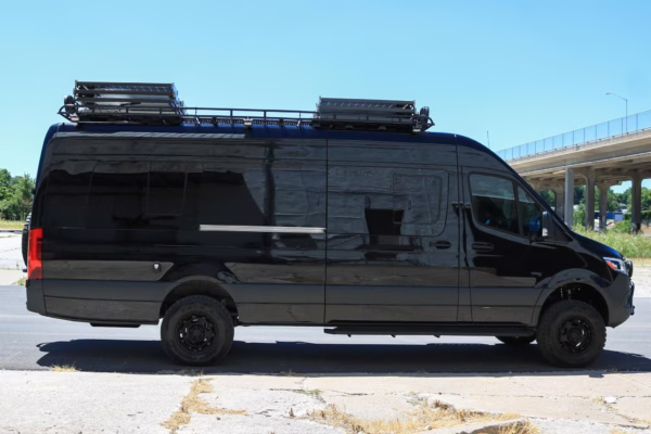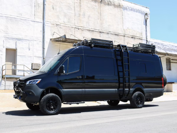 2021 Mercedes-Benz Sprinter 2500 4×4, finished in Obsidian Black Metallic with a brown interior.