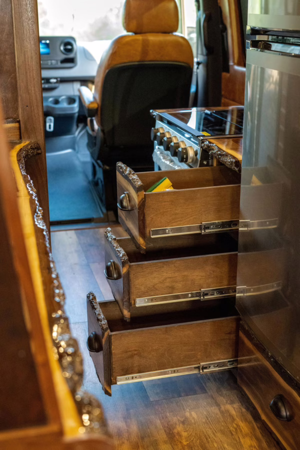 The Mercedes-Benz Sprinter is an excellent foundation for a camper build – it’s robust, spacious, and surprisingly capable when fitted with 4-wheel-drive, like this one is. This Sprinter touts a LONG list of modifications intended to turn it into a home away from home – there’s a bed, a sink, a fridge, a stove, a shower, a toilet, and no less than 12 solar panels on the roof! It also boasts gorgeous materials like brown leather upholstery and furniture made with walnut and cherry woods – and it touts the desirable 3.0-liter turbodiesel V6. If you’re looking for a rig to explore the great outdoors in relative comfort, you’ve just found it!