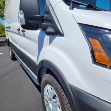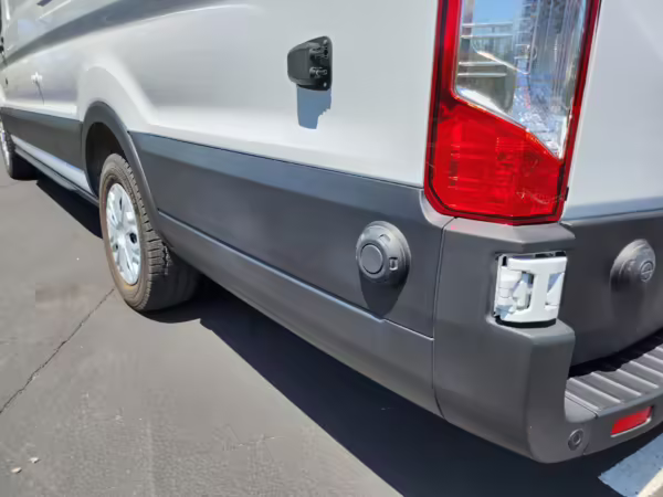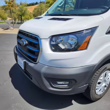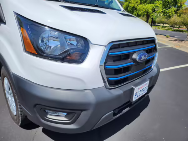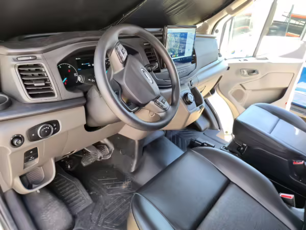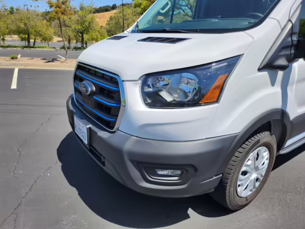2022 Ford E-Transit 350, finished in Oxford White with a Dark Palazzo Gray interior.