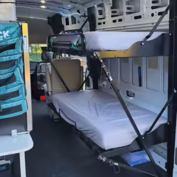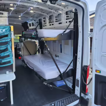 2 bunk beds (collapsible with memory-foam mattresses)