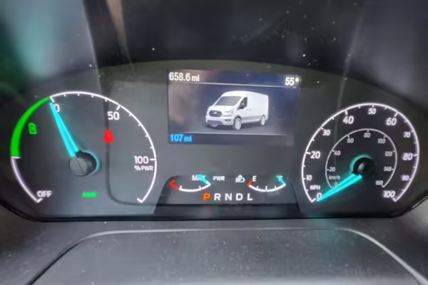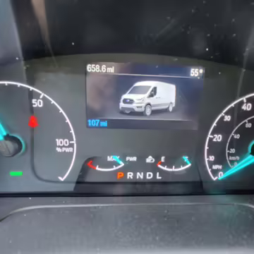 The former owner states that this E-Transit has not required service due to its low mileage.
