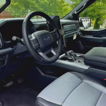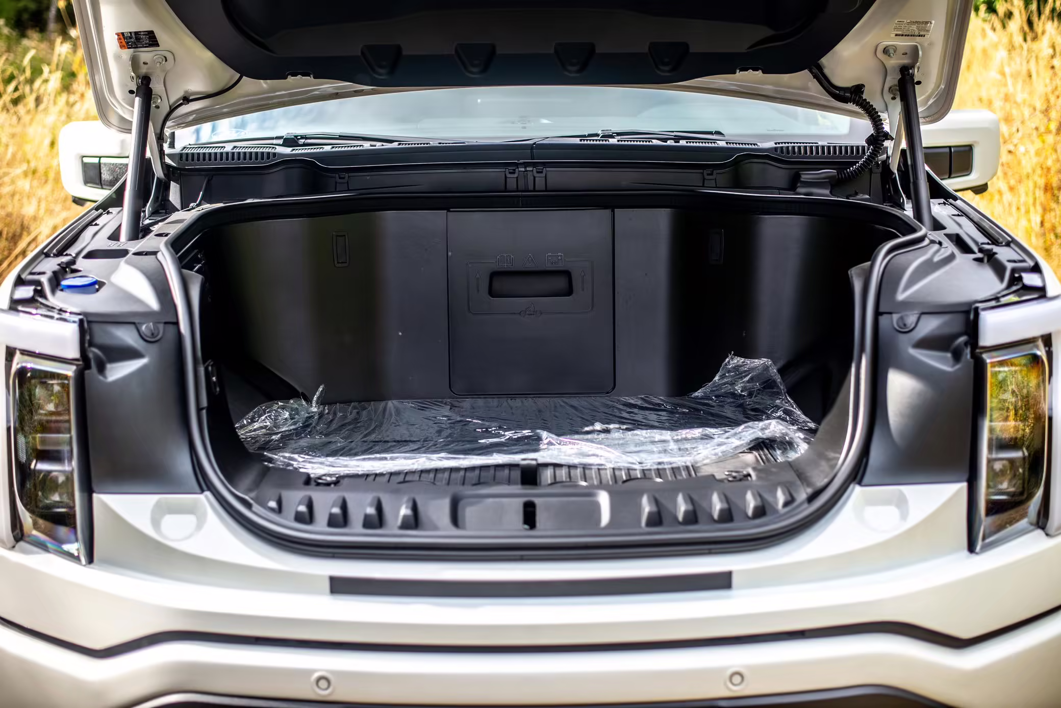 Power comes from a pair of electric motors, which draw electricity from a 98-kilowatt-hour lithium-ion battery pack to zap the four wheels with 452 horsepower and 775 lb-ft of torque. The EPA gave this version of the F-150 Lightning a maximum driving range rating of 230 miles.