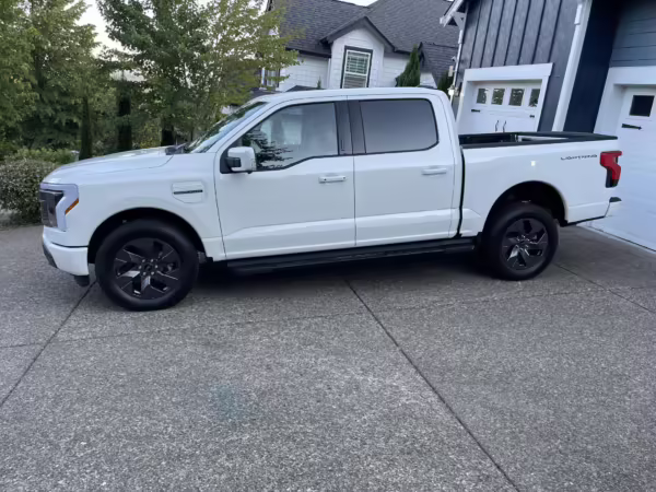 2022 Ford F-150 Lightning Lariat, finished in Star White Metallic with a black interior.