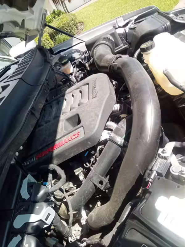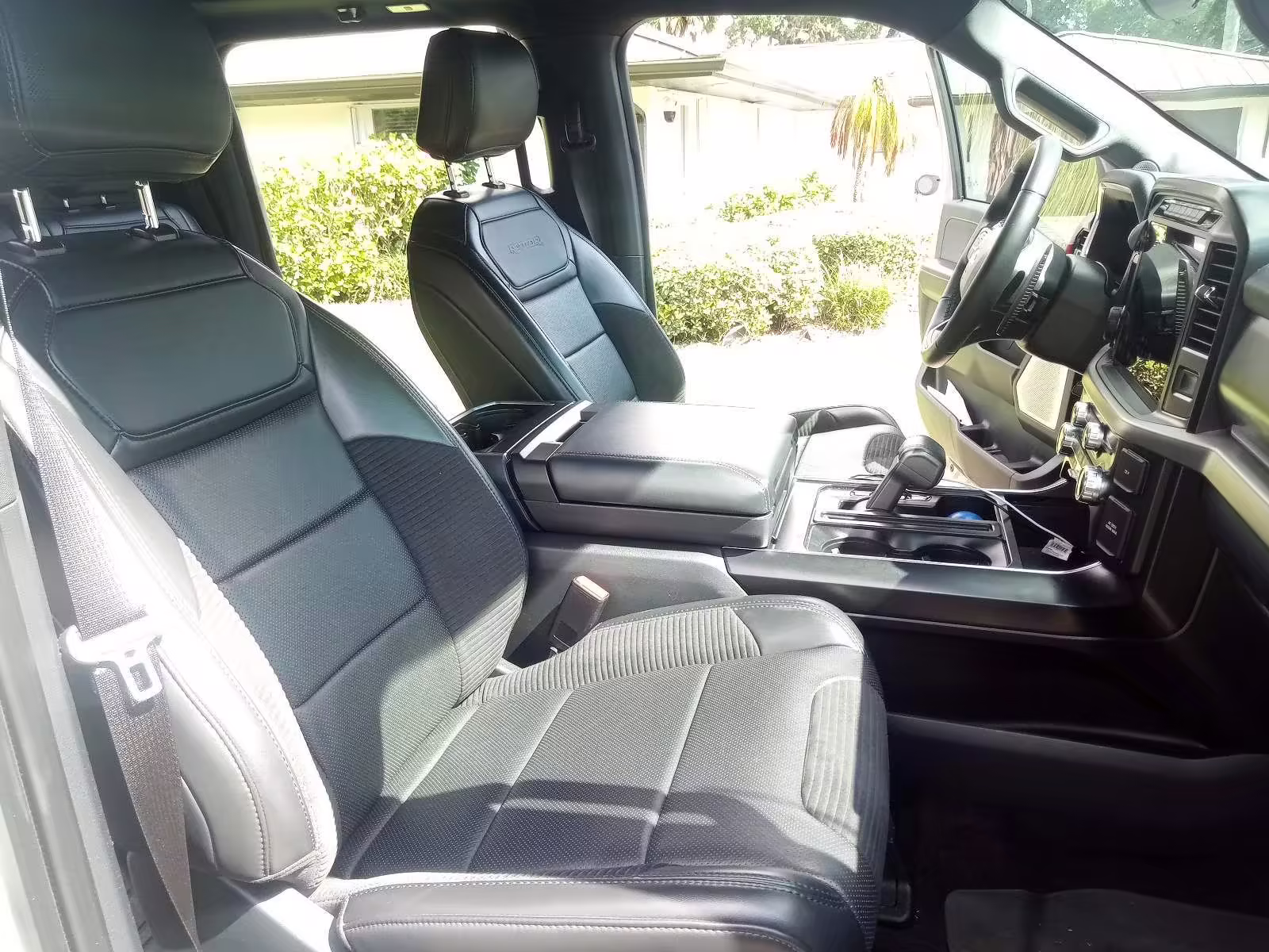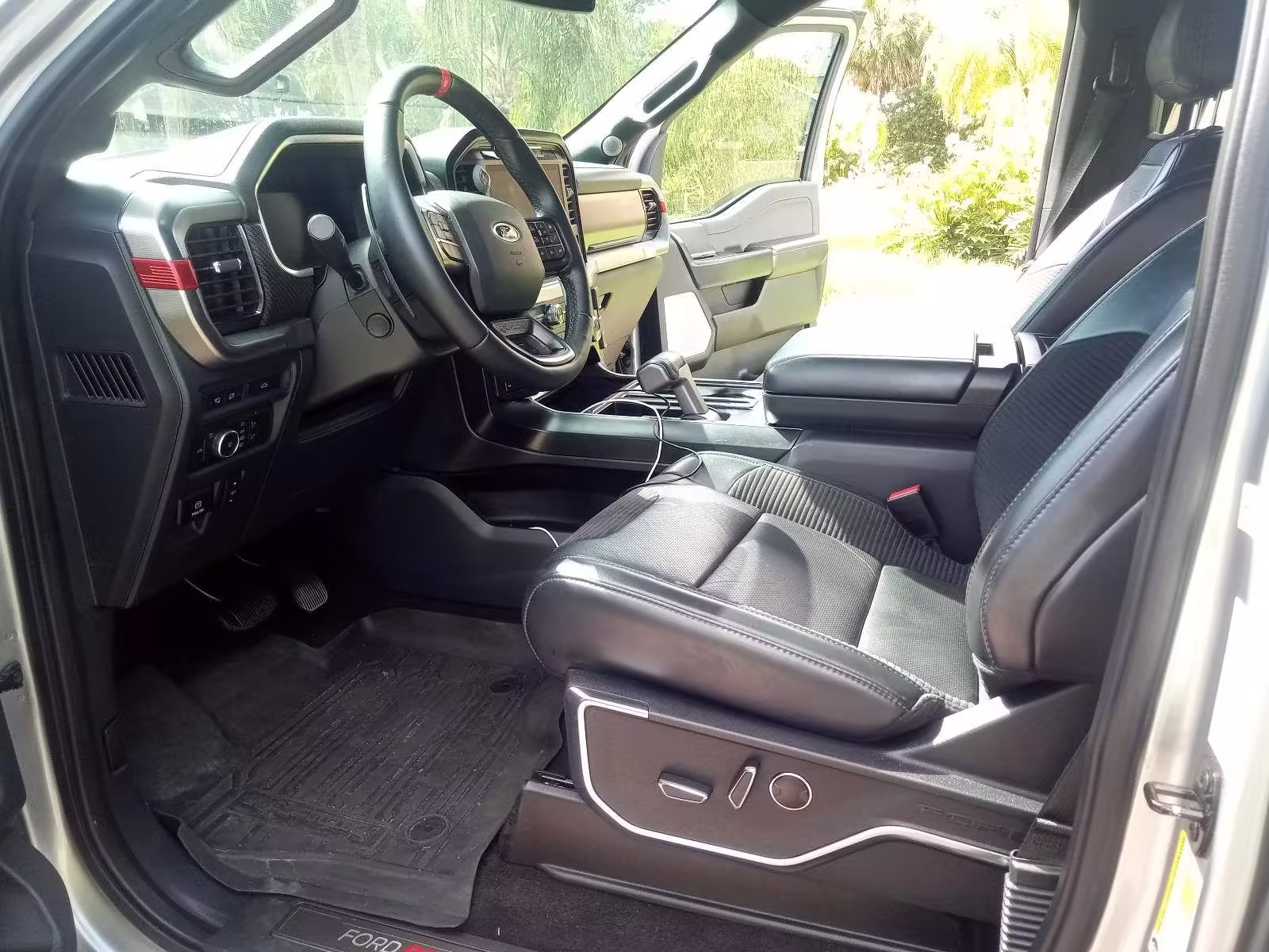 According to a digital window sticker provided in the gallery, factory equipment on this Raptor includes the Equipment Group 801A, the Moonroof and Tailgate Package, the Raptor Carbon Fiber Package, 17-inch forged aluminum wheels, FOX live valve shocks, Automatic LED headlights, heated and ventilated front bucket seats, and more as detailed below. Modifications reported by the seller are limited to tinted windows.