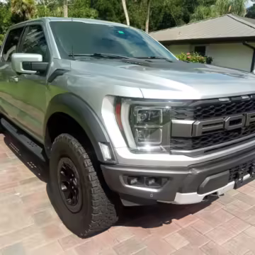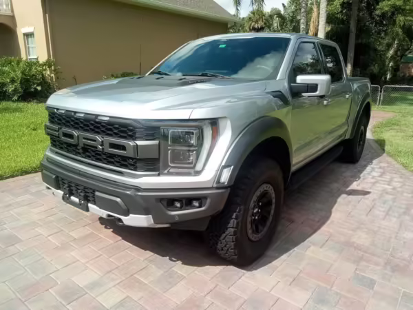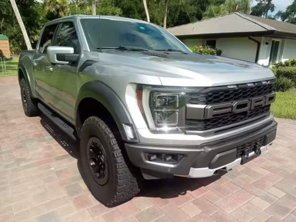2022 Ford F-150 Raptor, finished in Iconic Silver Metallic with a black interior.