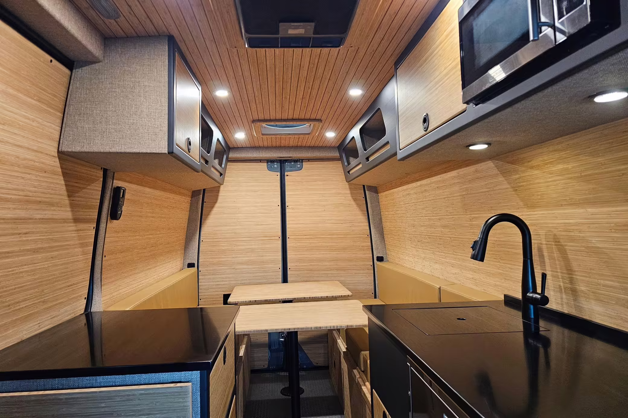 Rear dinette area with 2 tables (converts to bed)
