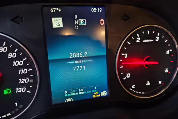 The odometer currently displays approximately 7,800 miles.