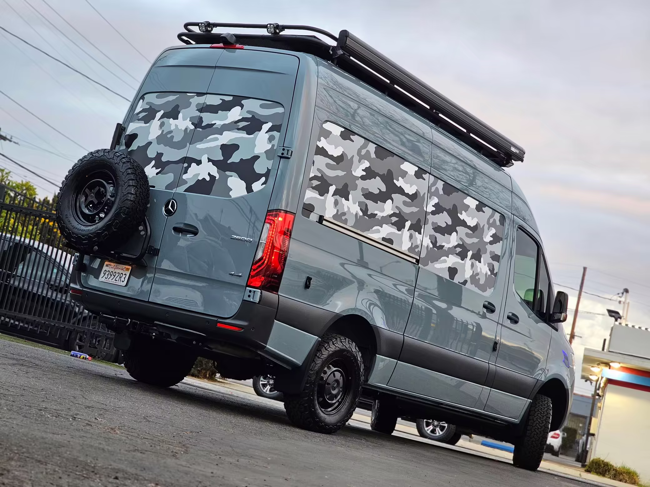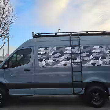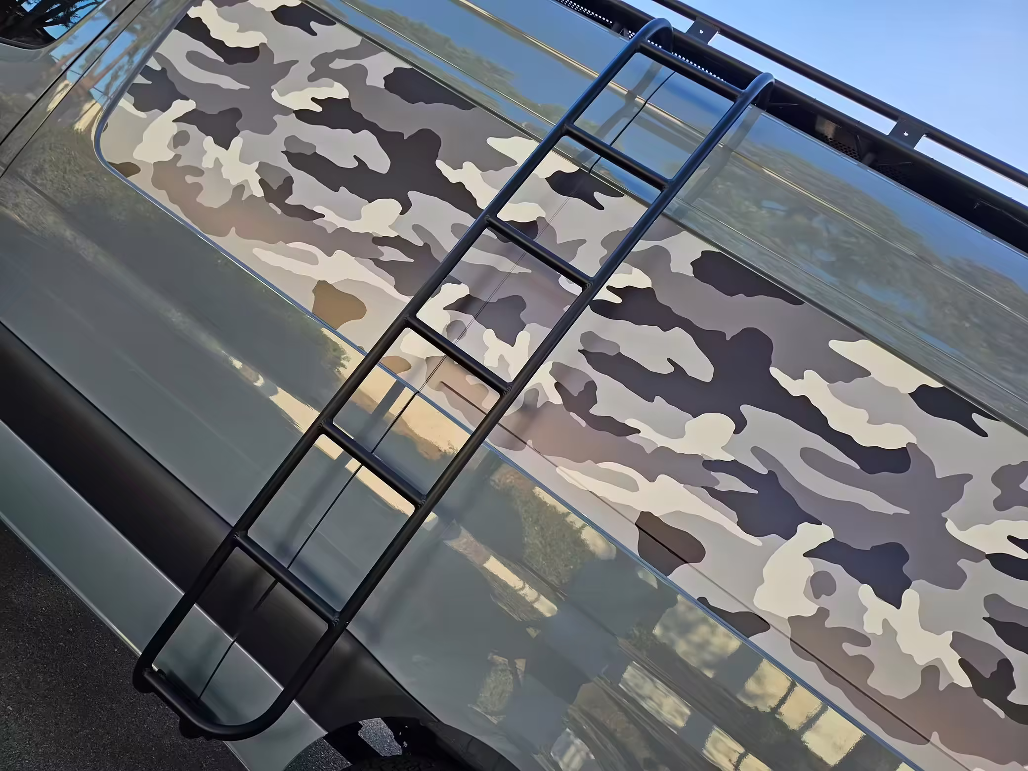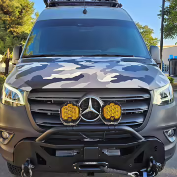 Camo vinyl wrap on the hood and side panels