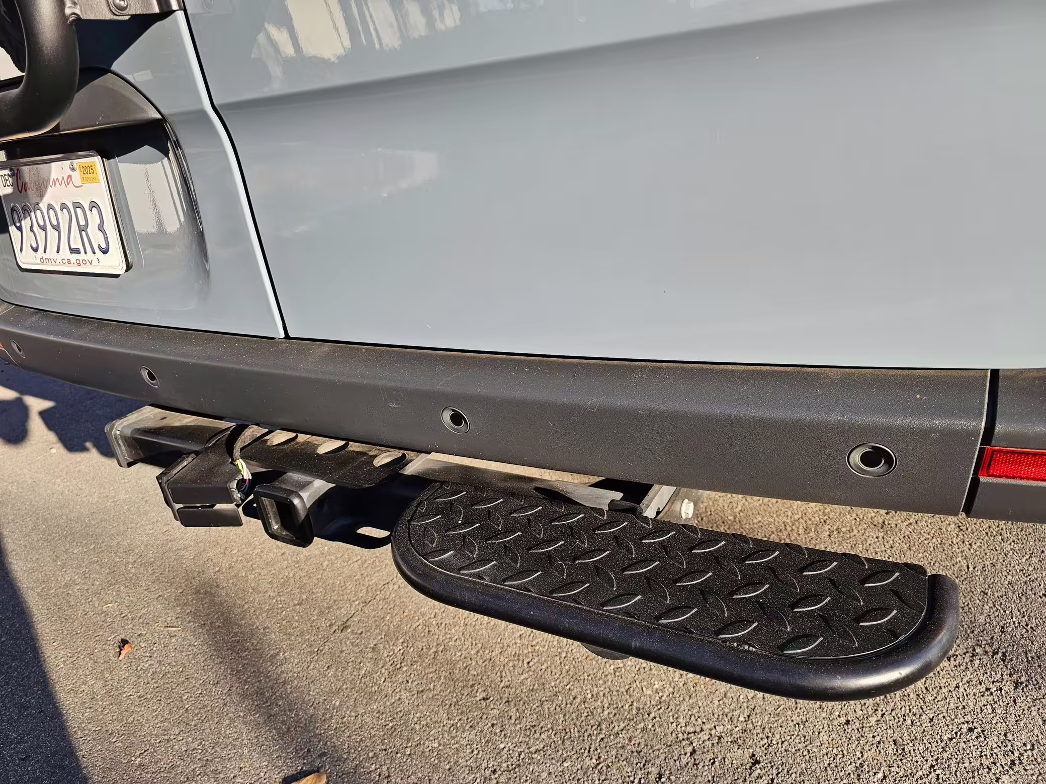 The former owner states that the rear parking sensors are triggered when the aftermarket rear step is mounted.