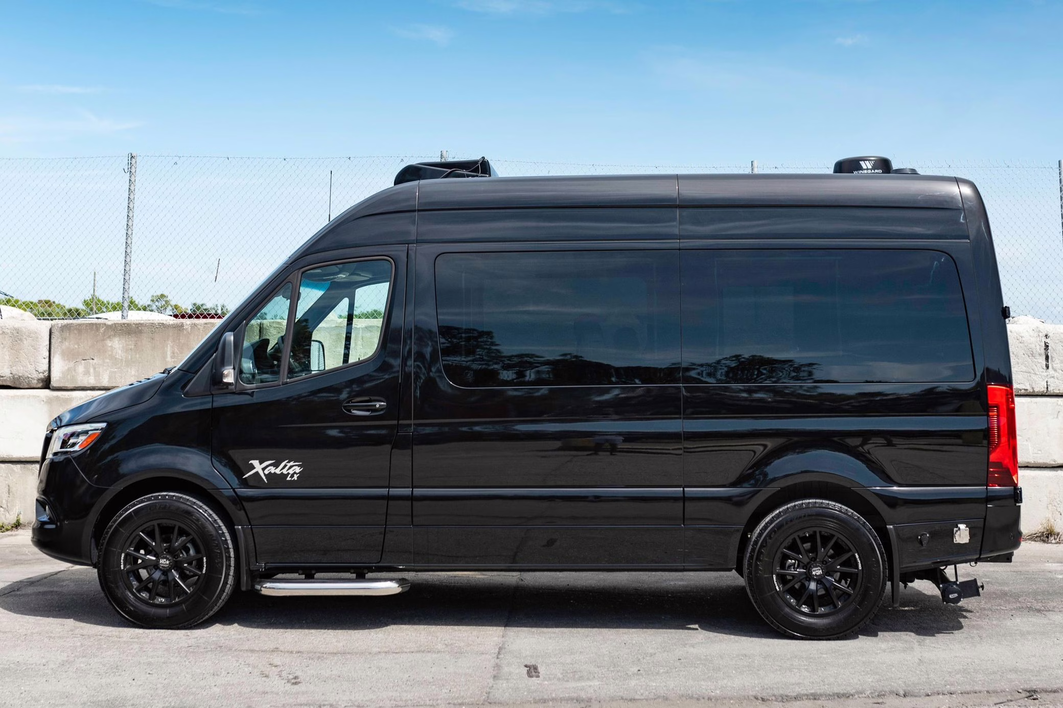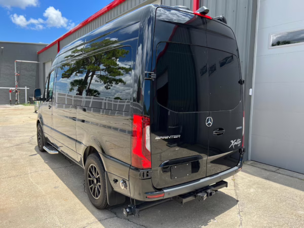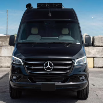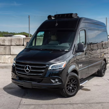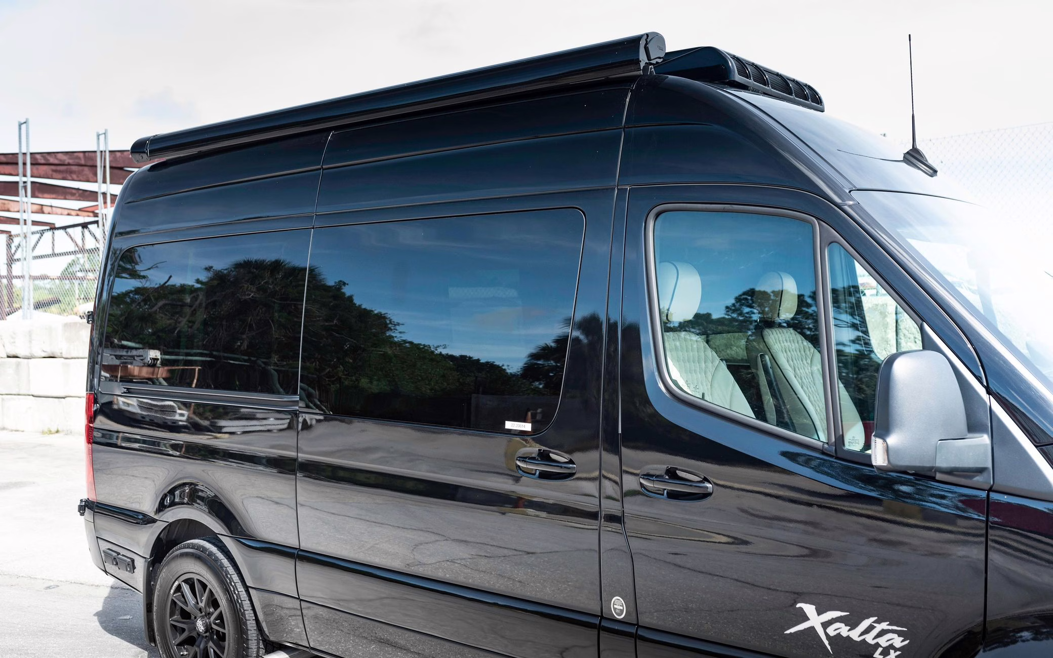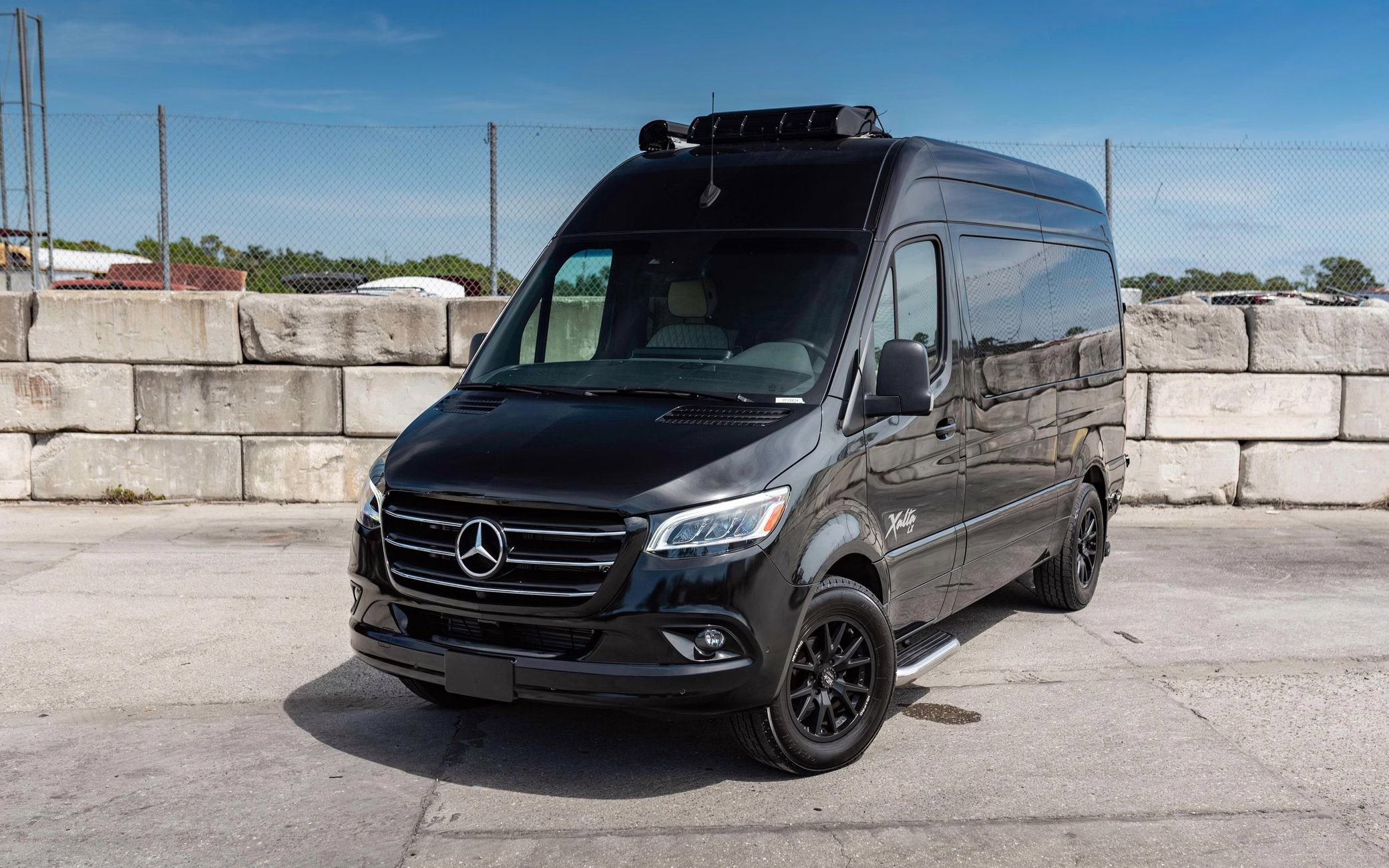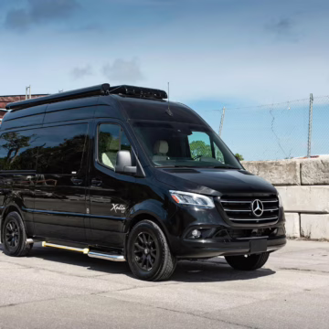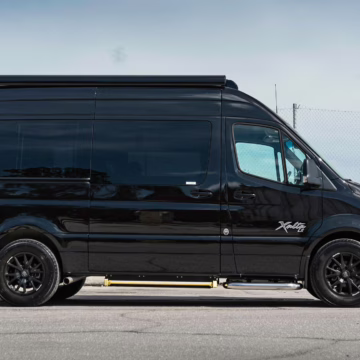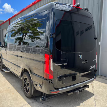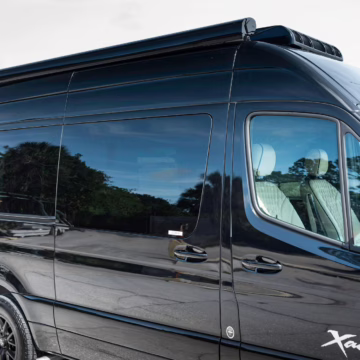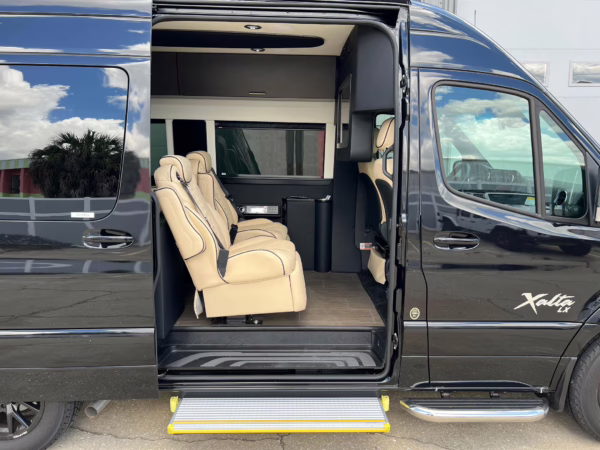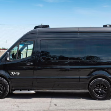 2022 Mercedes-Benz Sprinter 2500 Regency Xalta LX Tour, finished in black with a tan and black interior.