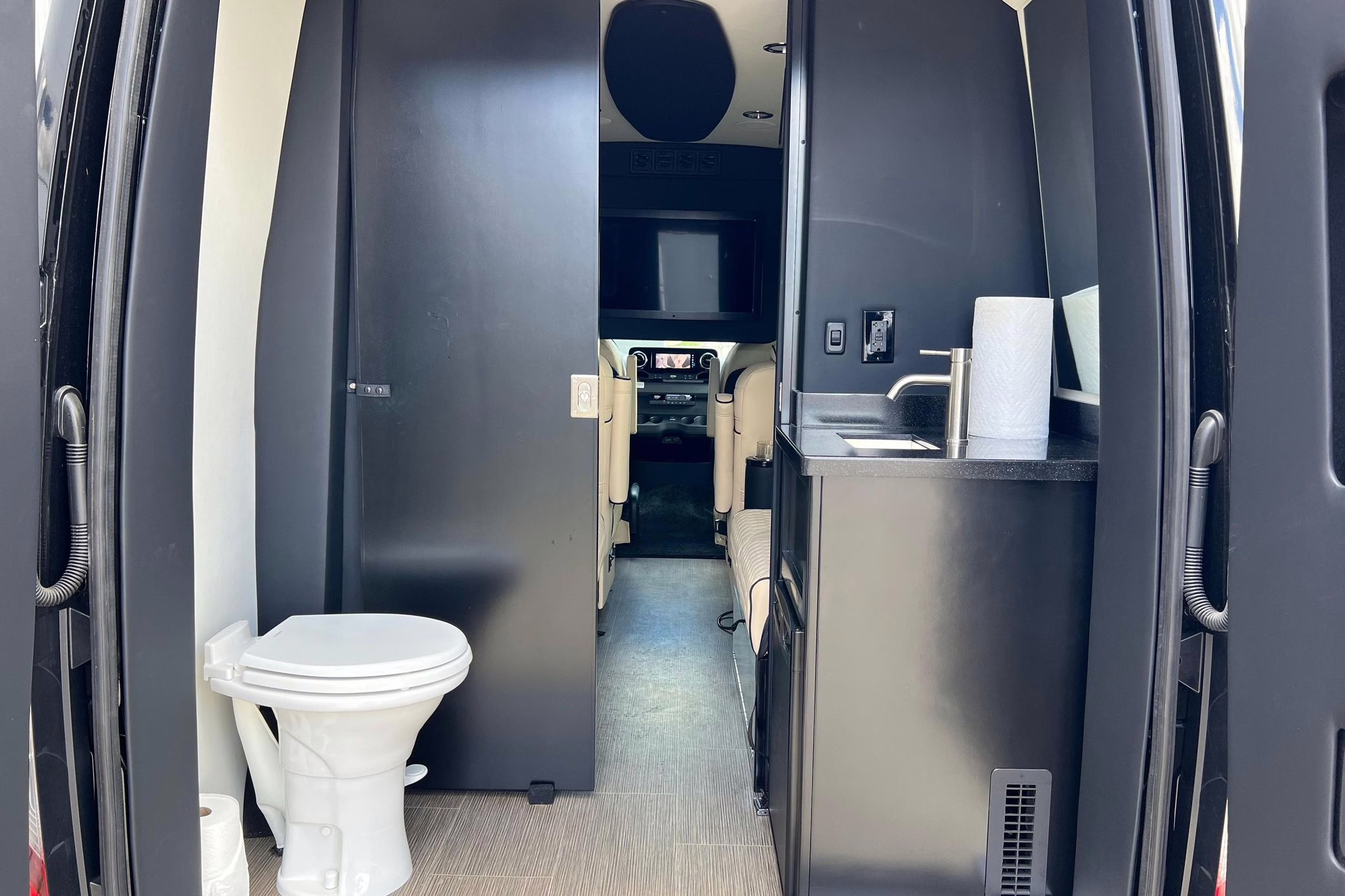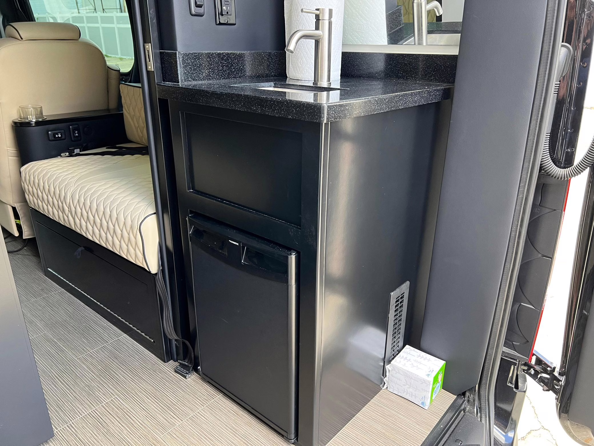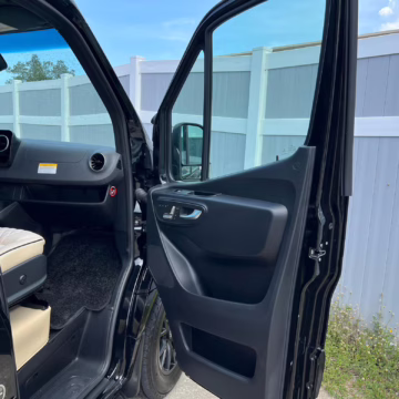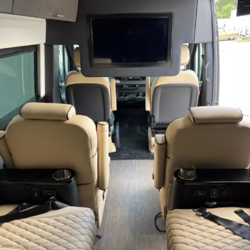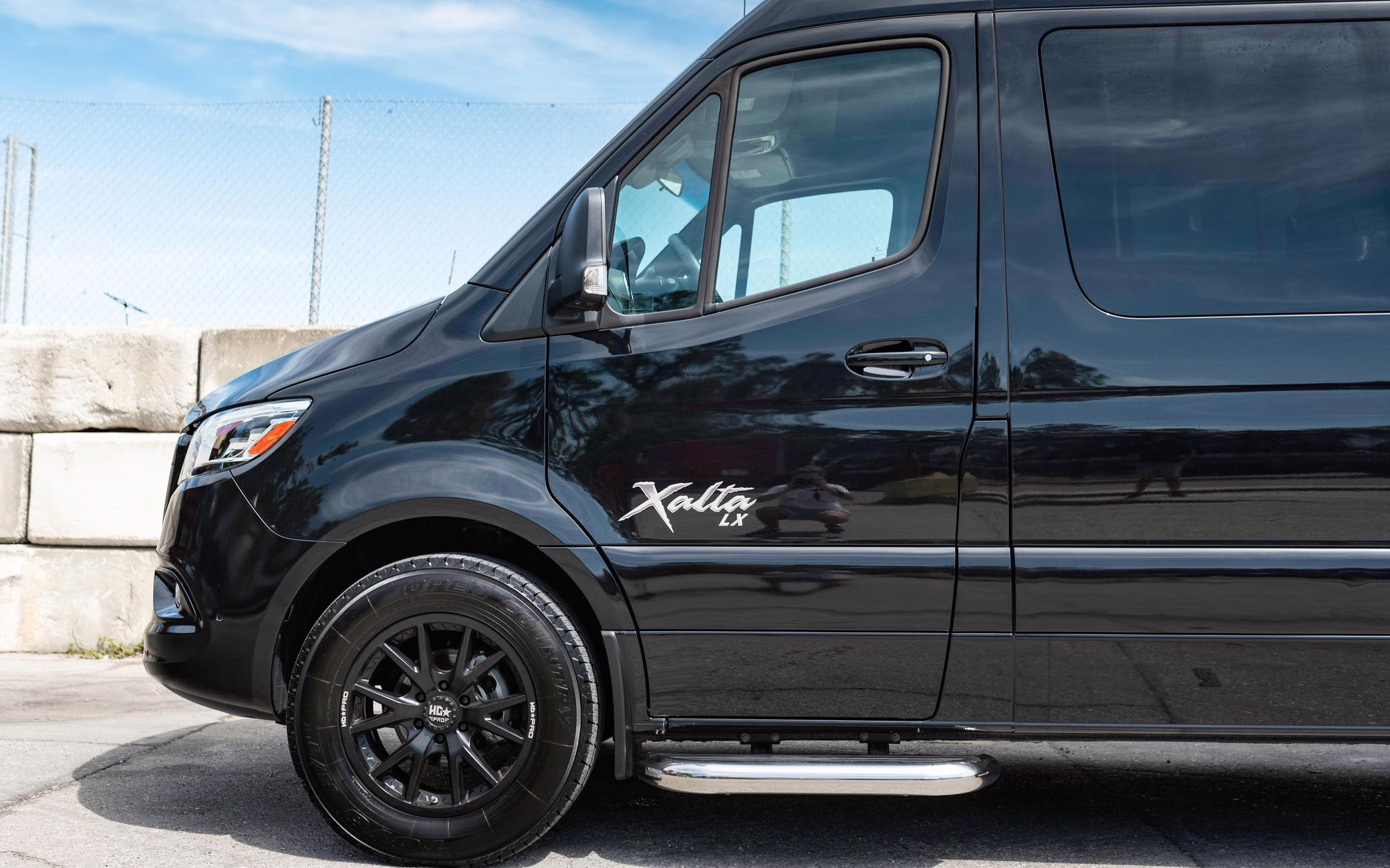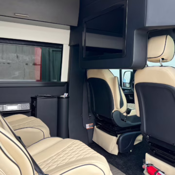 2022 Mercedes-Benz Sprinter 2500 Regency Xalta LX Tour, finished in black with a tan and black interior.