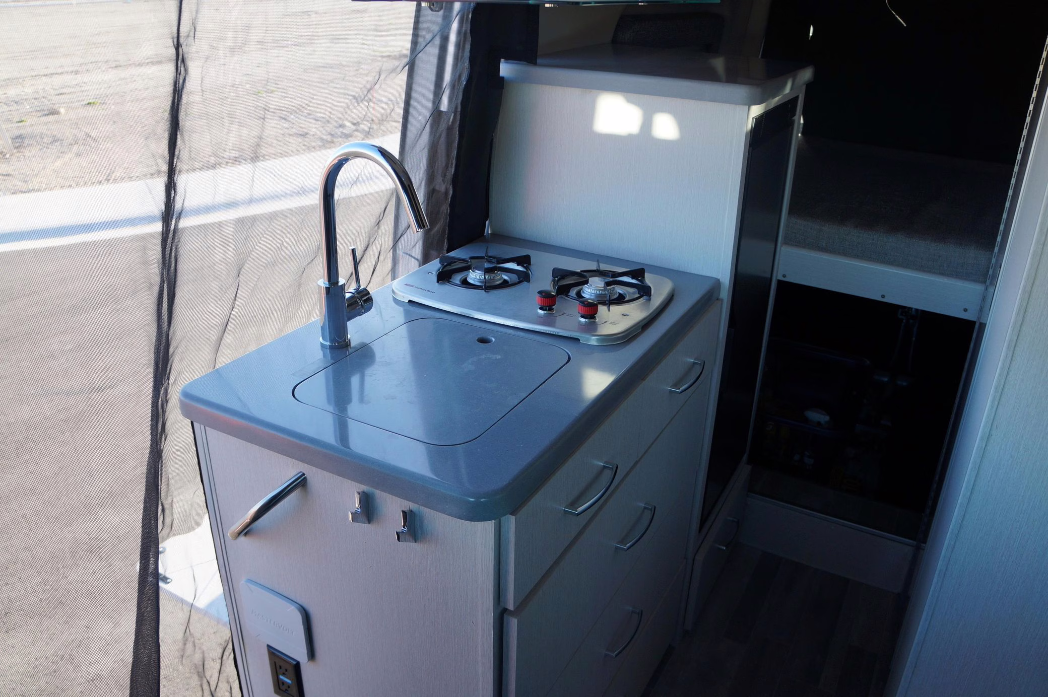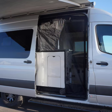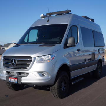 The Mercedes-Benz Sprinter is a great base for a camper build, as it’s versatile, spacious, AND dependable. This particular Sprinter has been converted into a camper by Thor Motor Coach, and it touts everything you need to live on the road – including a solar panel, roof awning, propane cooktop, refrigerator, and a bathroom. The part-time 4-wheel drive system should make this Sprinter surprisingly capable off-road, too – and the 3.0-liter turbodiesel V6 should give it plenty of passing power.