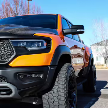 2022 Ram 1500 TRX, finished in Ignition Orange with a black interior.