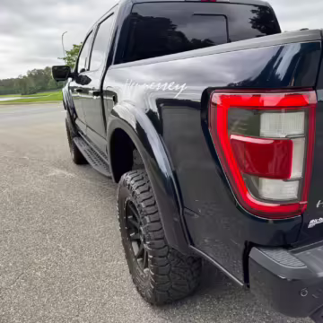 Power comes from a 5.0-liter supercharged V8, rated at 775 horsepower and 727 lb-ft of torque, according to Hennessey. Output is directed to the rear or all four wheels through a 10-speed automatic transmission.