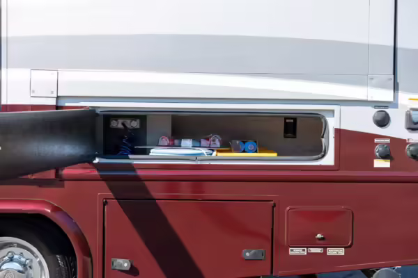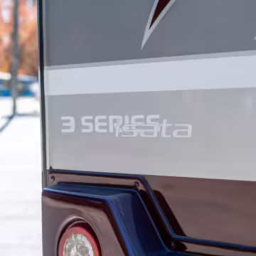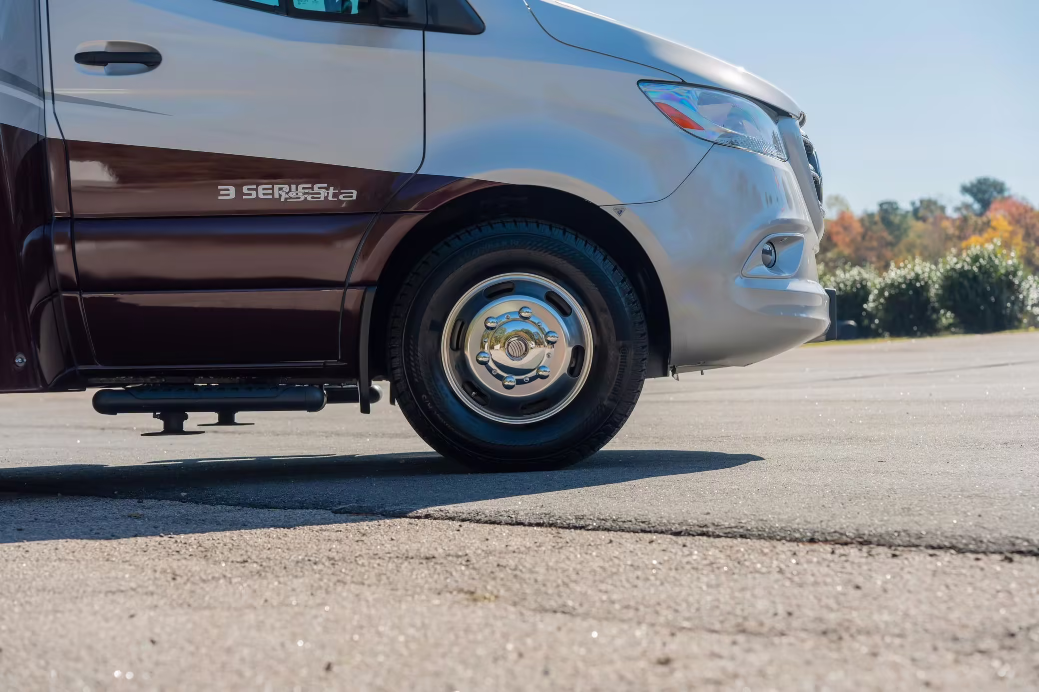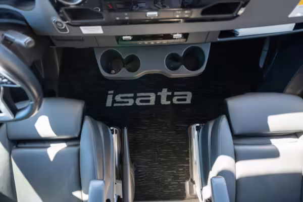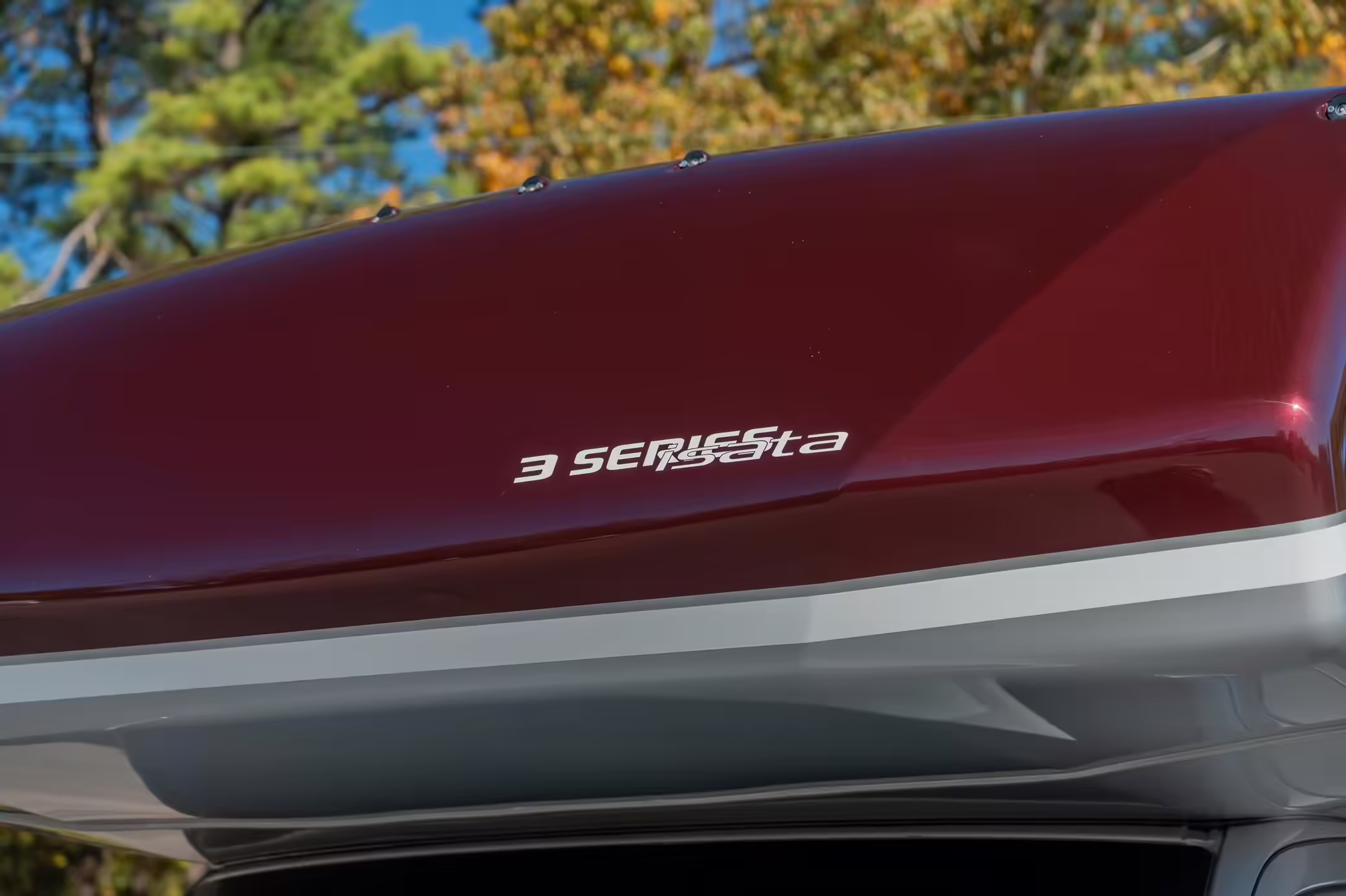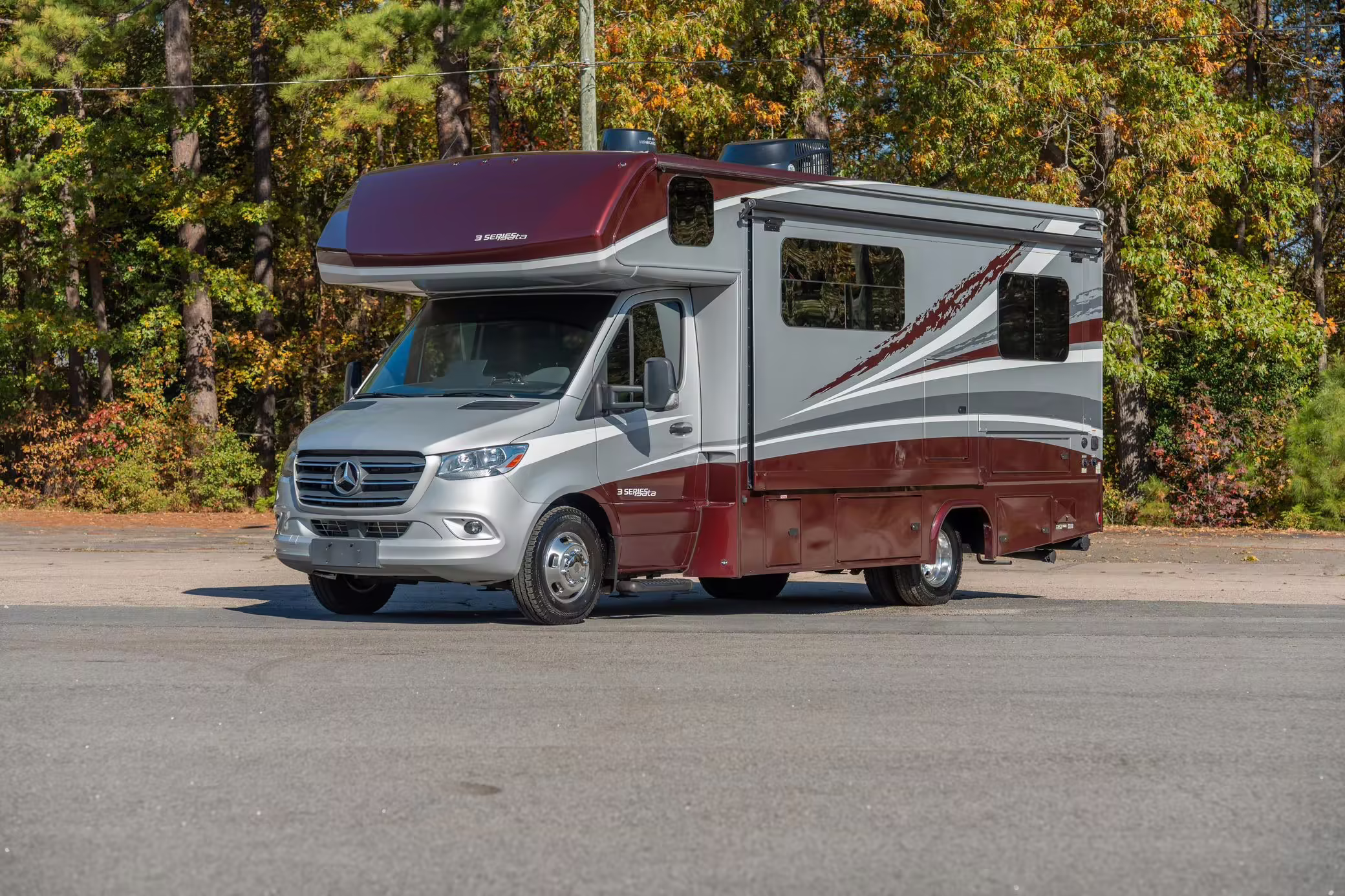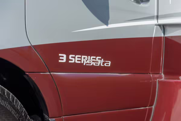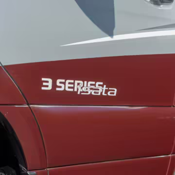 2023 Mercedes-Benz Sprinter 3500XD Isata 3 Series, finished in silver and burgundy with a black interior.