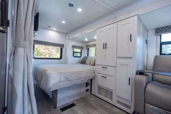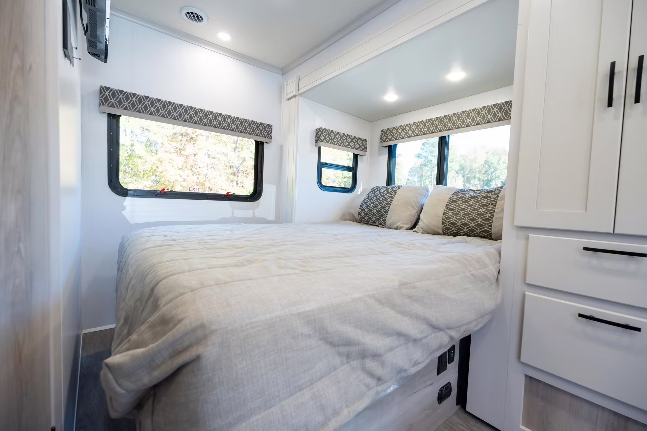 The Mercedes-Benz Sprinter is an excellent foundation for a camper build, as it’s robust, spacious, and offered in numerous configurations. This particular Sprinter is an impressive camper build by Dynamax, boasting some fantastic features – including a driver-side wall slide, a cab-over bunk, a queen-sized bed, a toilet, a shower, and much more! This Sprinter also shows just 7,500 miles on the odometer.